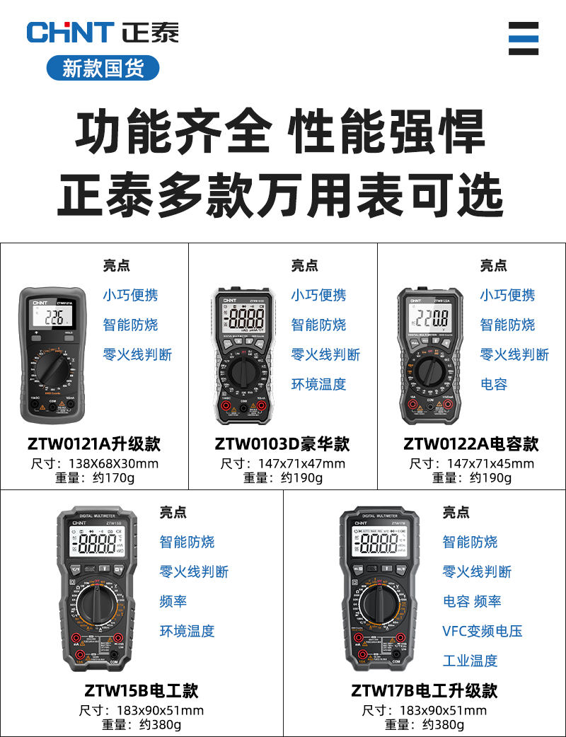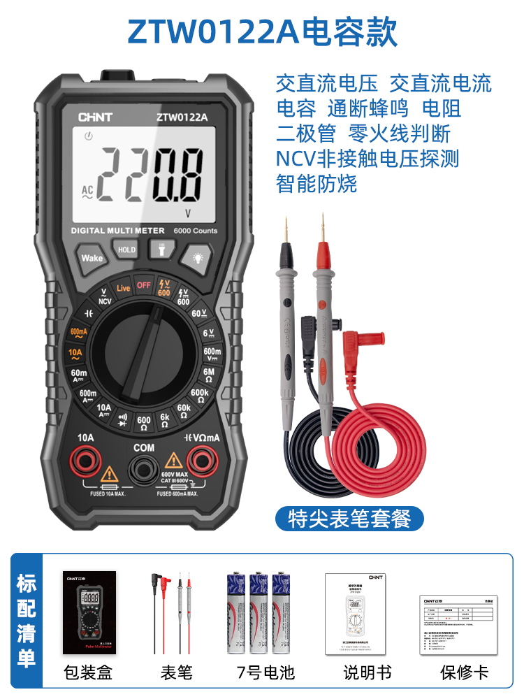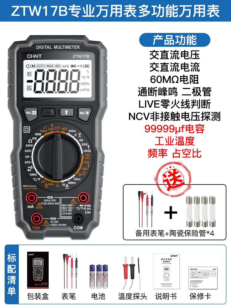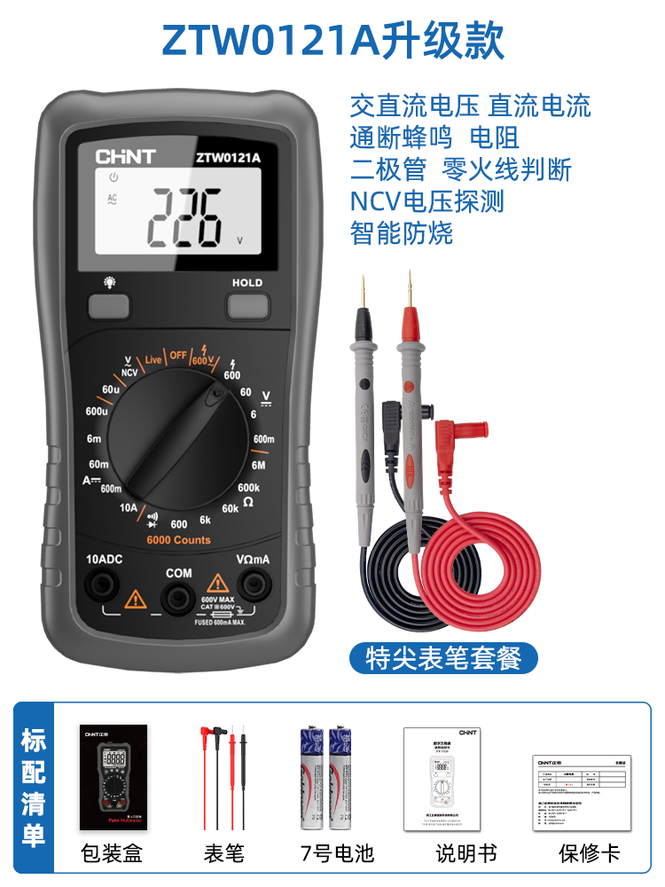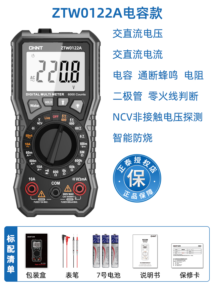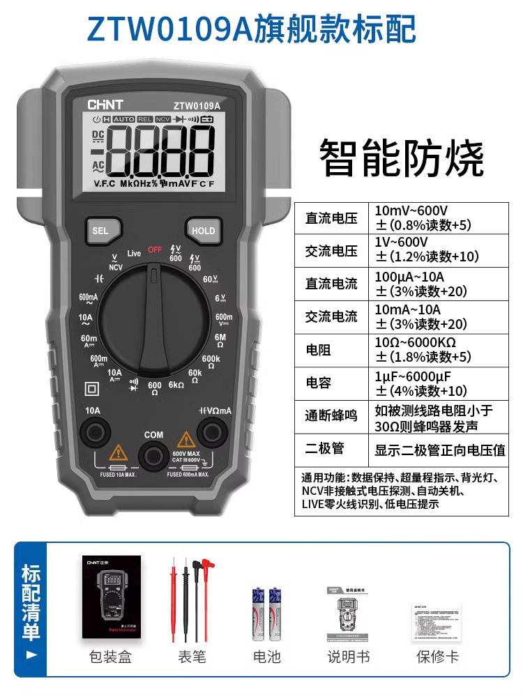 Chint 멀티 미터 디지털 고정밀 안티 번 휴대용 지능형 유지 보수 다기능 전기 미터
