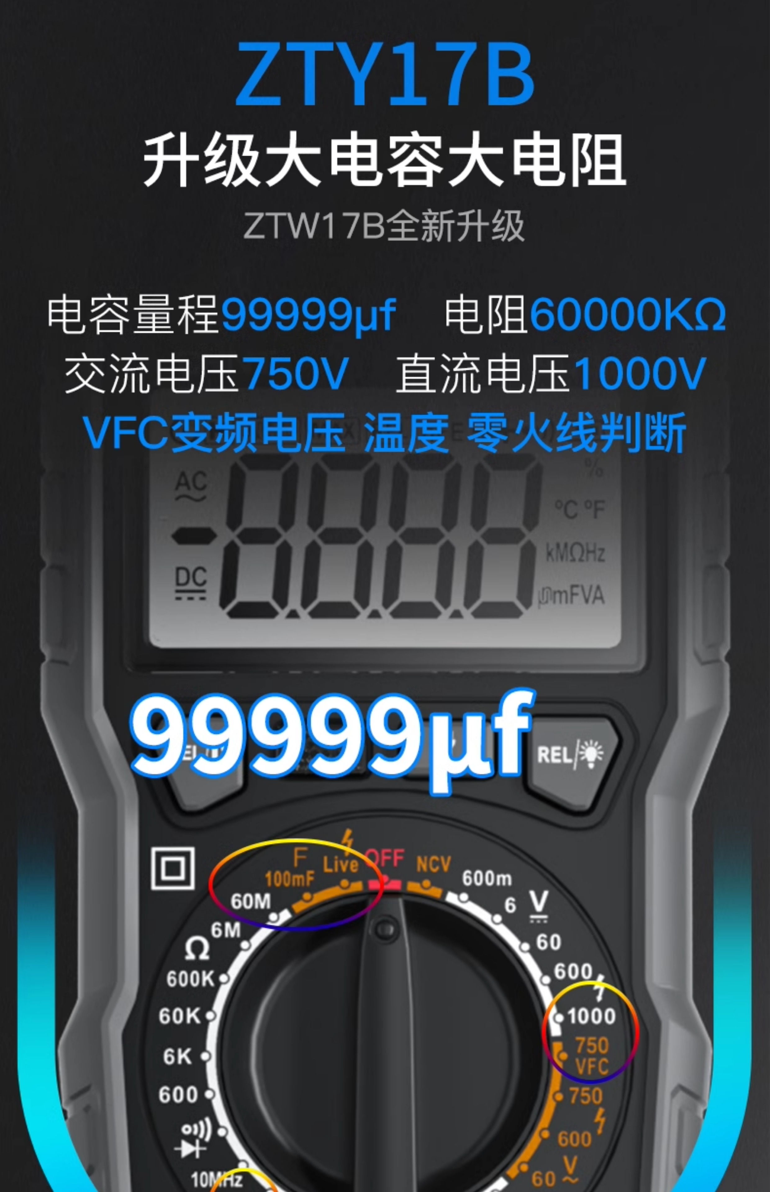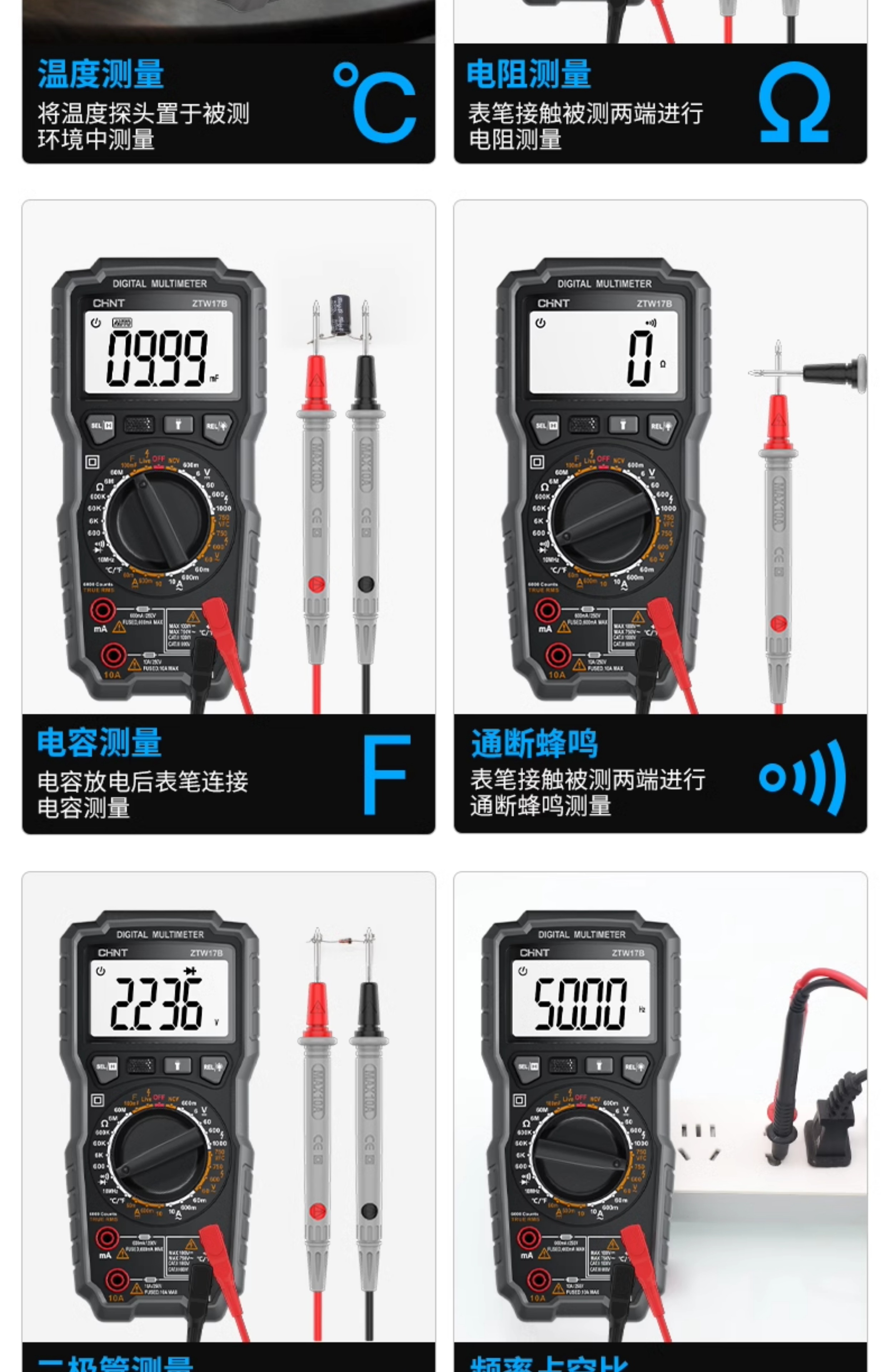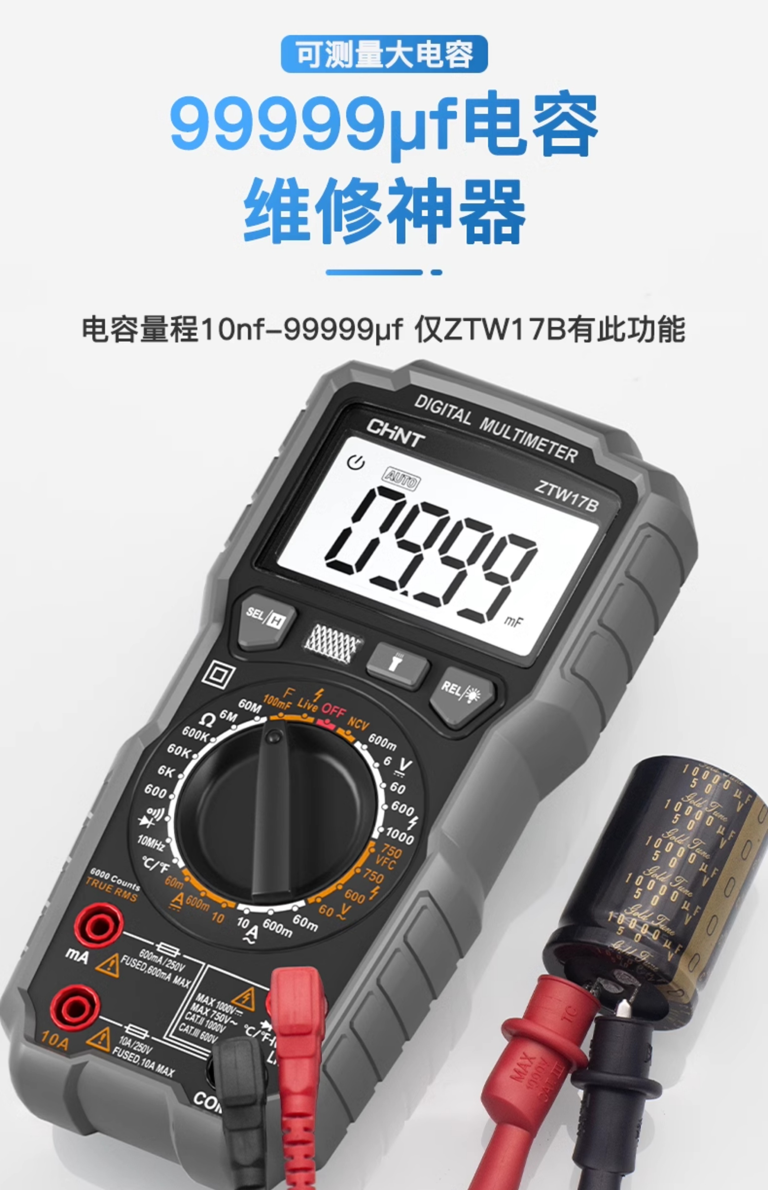 • ZTW17B [전기 기술자를 위한 전문 모델] 커패시터/온도 주파수 변환 전압(테스트 리드 + 세라믹 퓨즈 포함)