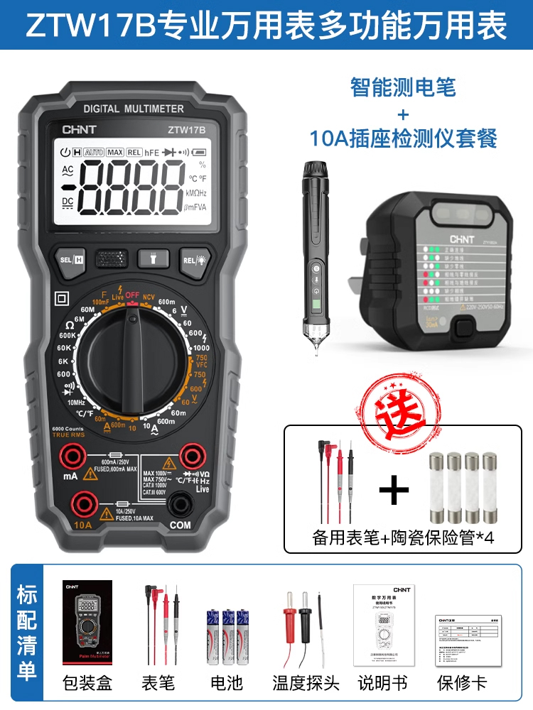 • ZTW17B [전기 기술자 전문 모델] + 스마트 펜 소켓 감지기 + (테스트 리드 + 세라믹 보험 포함)