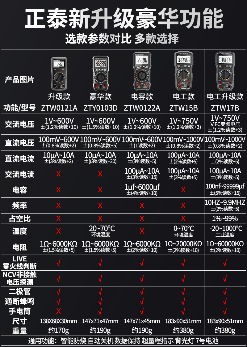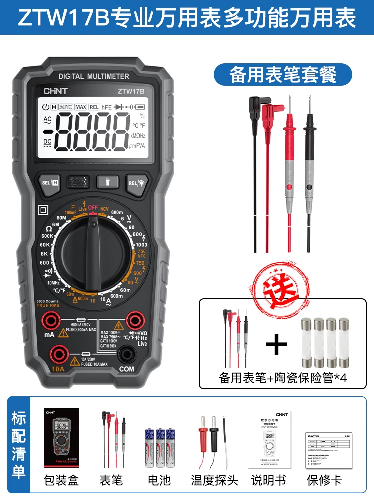 • ZTW17B [전기 기술자 전문 모델] + 테스트 리드(테스트 리드 + 세라믹 보험 포함)