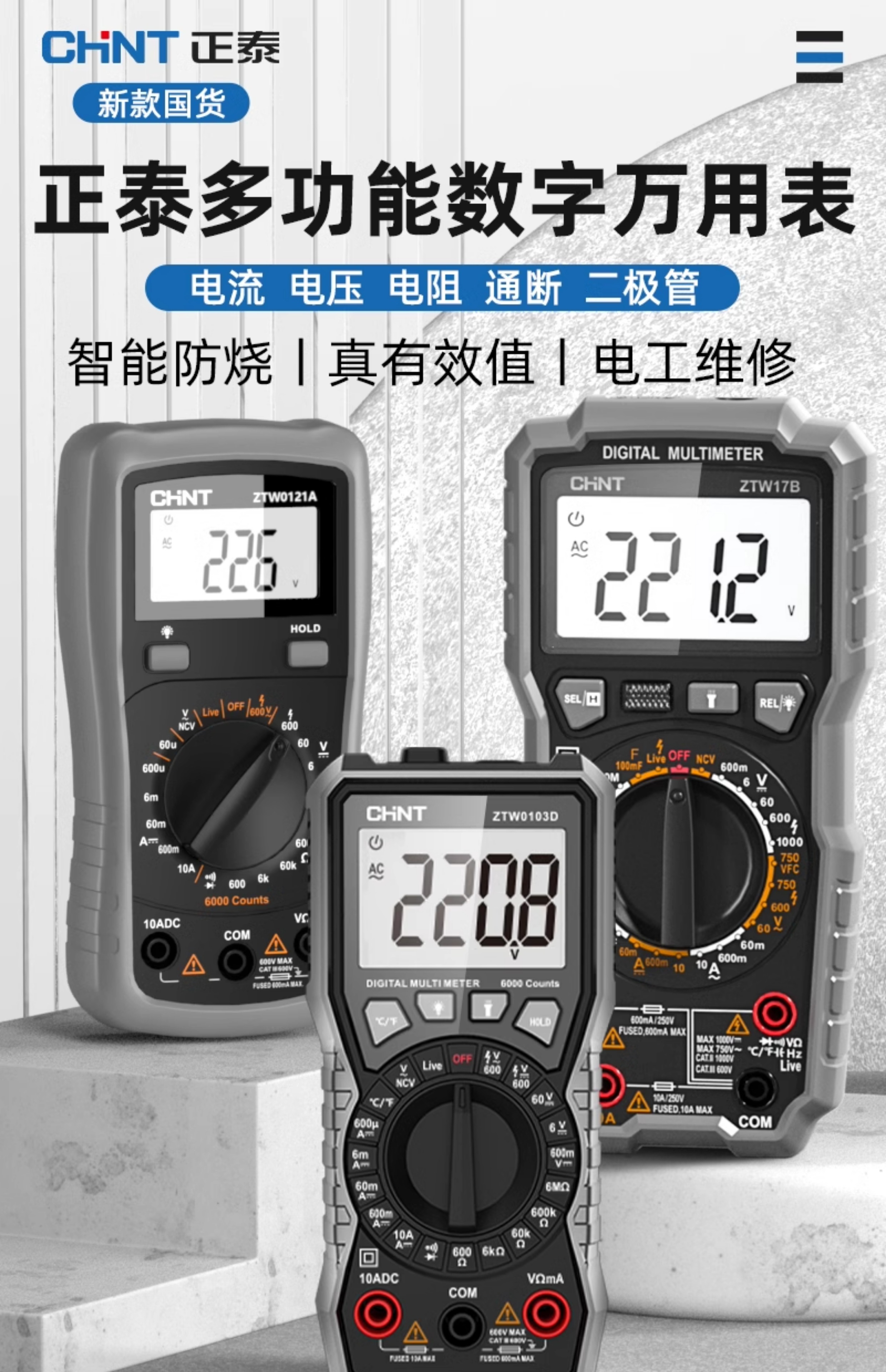 Chint 멀티 미터 디지털 고정밀 안티 번 휴대용 지능형 유지 보수 다기능 전기 미터스토어 가기