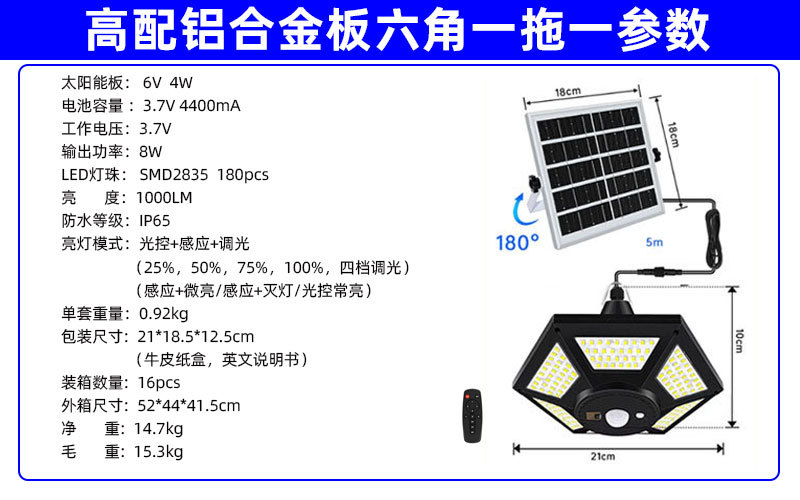 • 고급 알루미늄 합금판 180LED 육각형 1대1