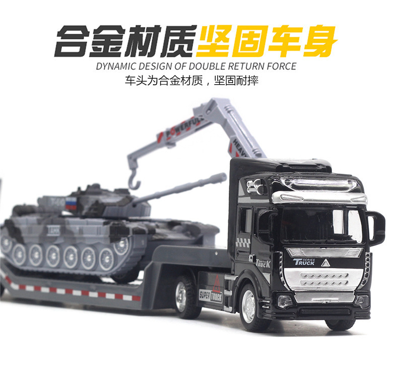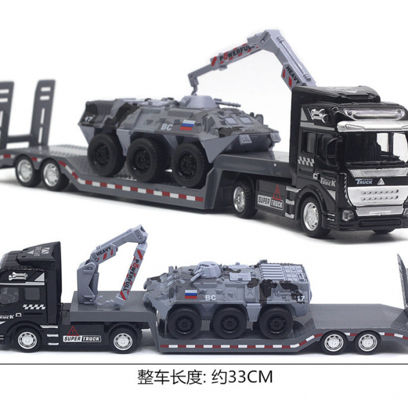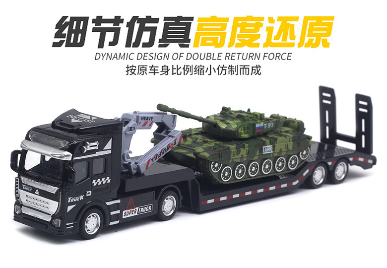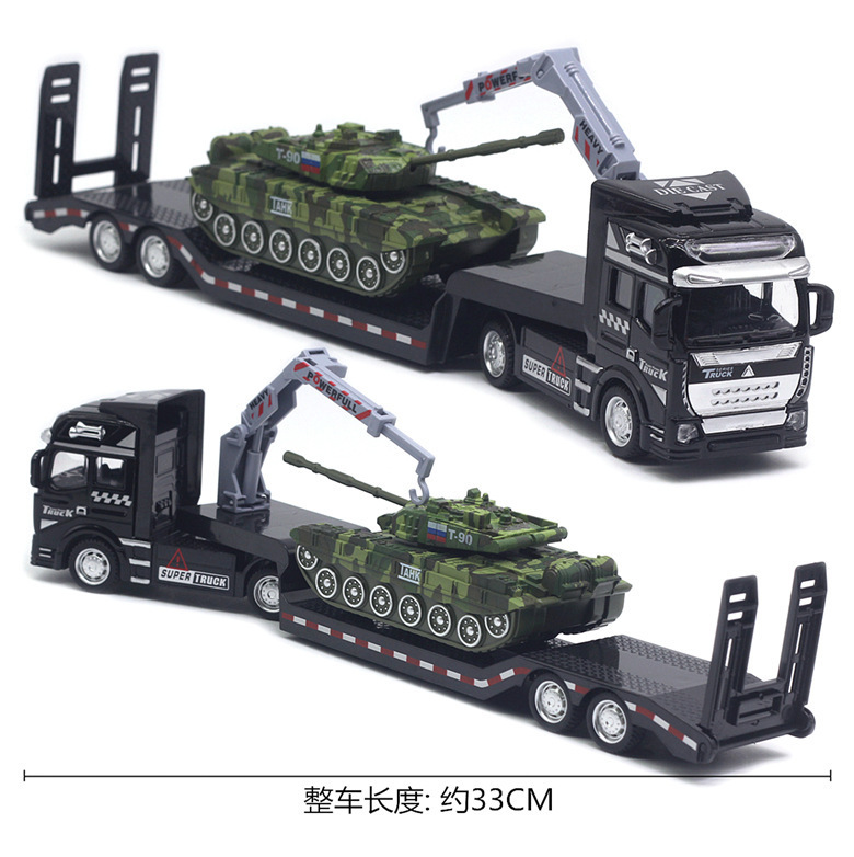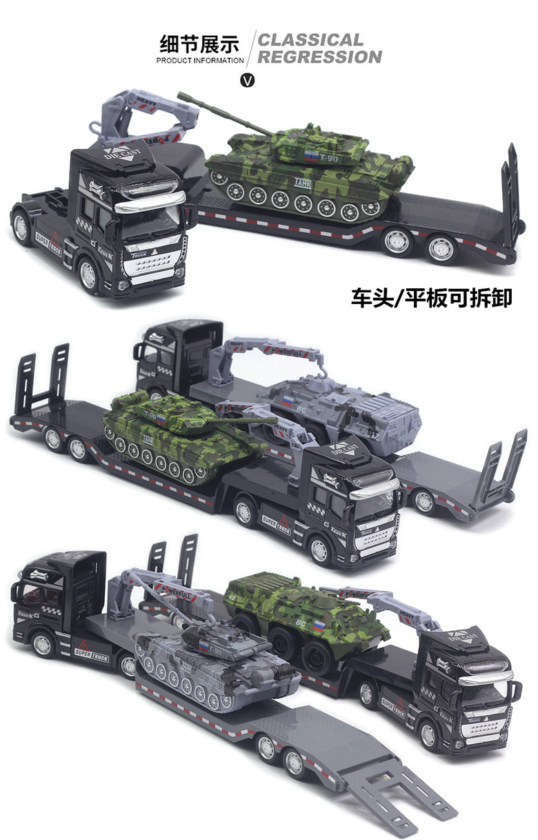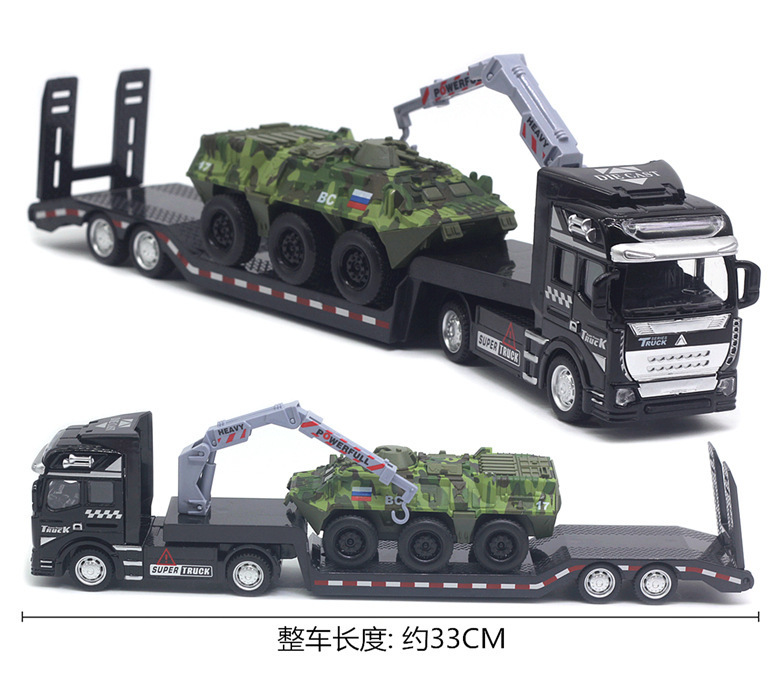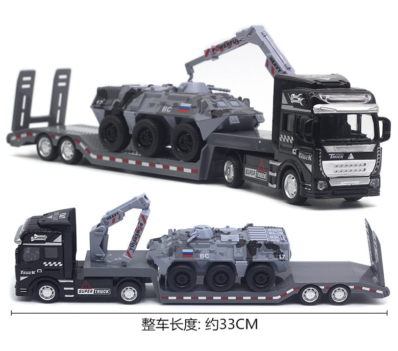군용 플랫 베드 트레일러 모델 합금 시뮬레이션 탱크 장갑차 어린이 장난감 자동차 소년