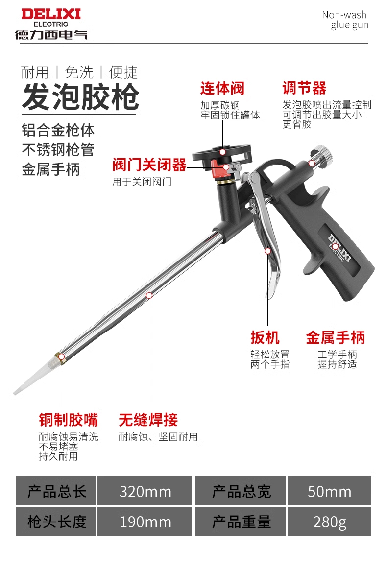 Delixi 폼 접착제 총 모든 금속 비 청소 폴리 우레탄 폼 실란트 접착제 총스토어 가기