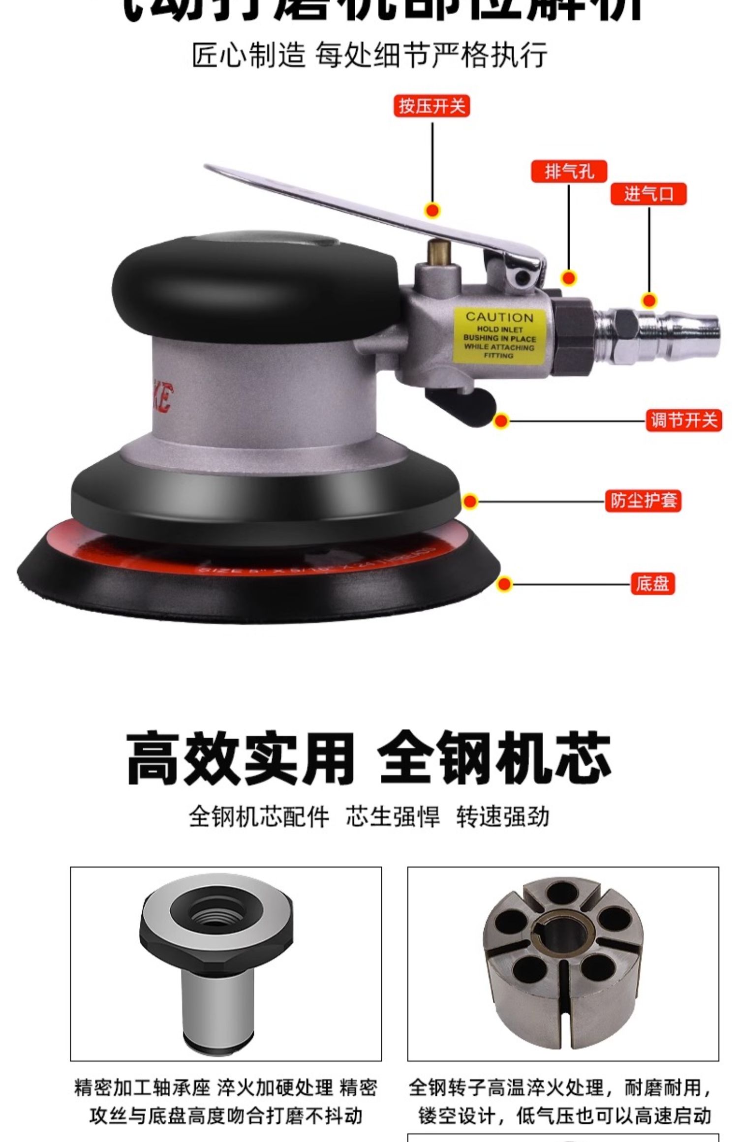 • [강력한 산업 등급] 5inch 전체 강철 비진공 + 사포 100장(무료 유지 보수 오일)
