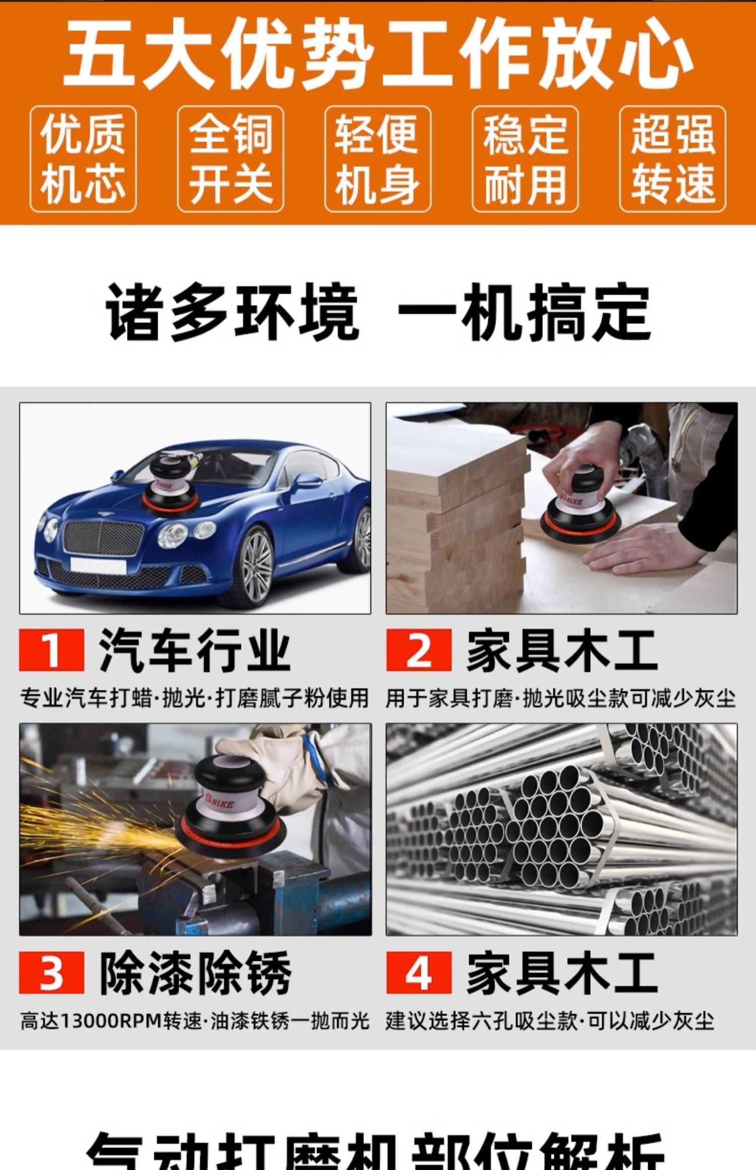 • [강력한 산업 등급] 5inch 전체 강철 비진공 + 사포 20장(무료 유지 보수 오일)