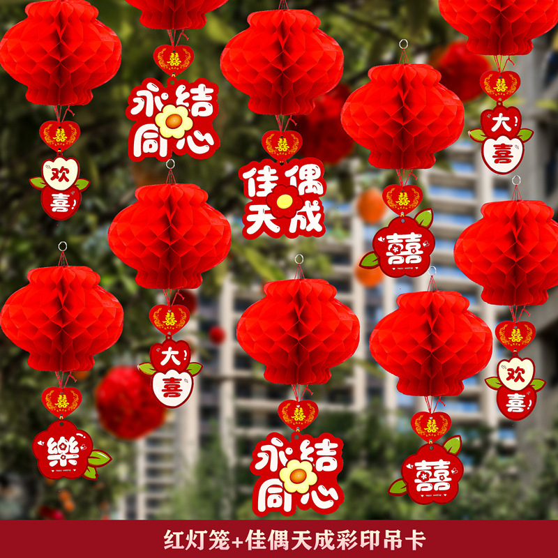 웨딩 새로운 작은 종이 랜턴 매달려 장식 웨딩 룸 배열 벌집 농촌 야드 웨딩 트리 레드 장식 용품