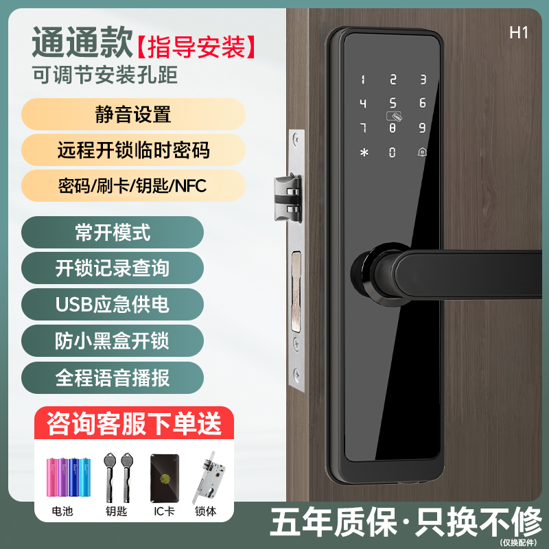 • 가정용 가성비 모델 - 구멍 간격 조절 가능 [비밀번호 + 카드 스와이프 + 키 + NFC + 원격 임시비밀번호] 안내 설치
