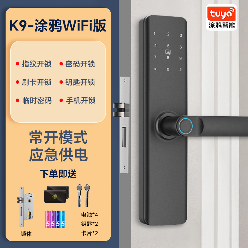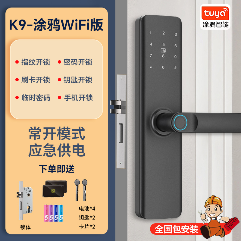• Tuya WiFi 원격 모델 - 실내 잠금 방지 [원격 잠금 해제 + 지문 + 비밀번호 + 카드 스와이프 + 키 + 원격 임시 비밀번호] 무료 설치