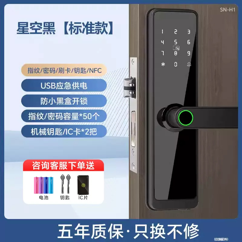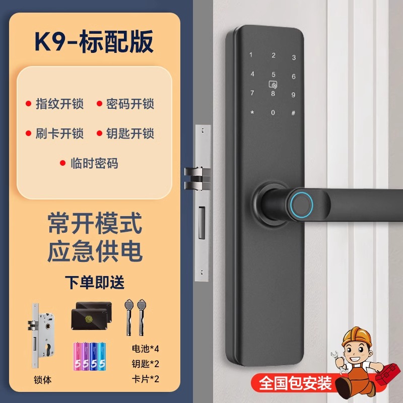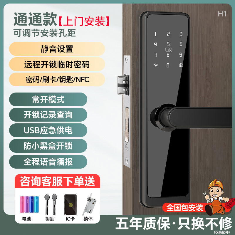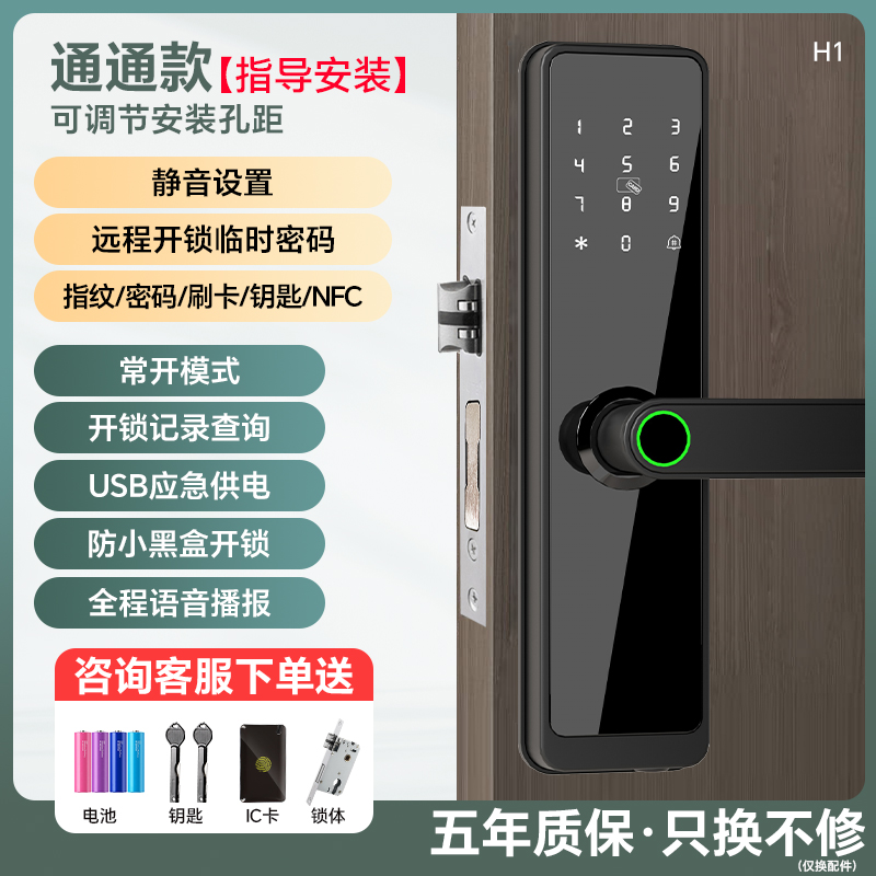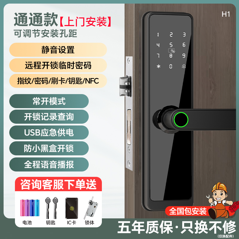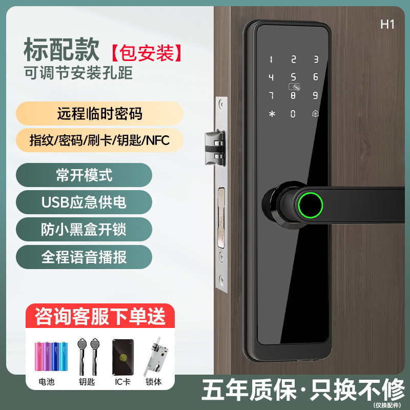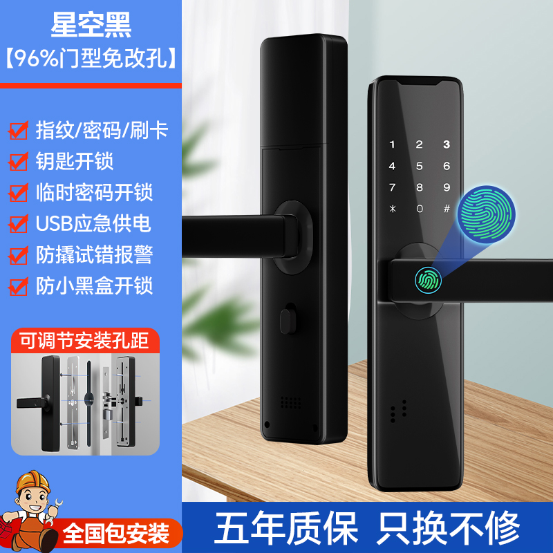 • 가정용 표준 모델 - 구멍 간격 조정 가능 [지문 + 비밀번호 + 카드 스와이프 + 키 + NFC + 원격 임시 비밀번호] 무료 설치