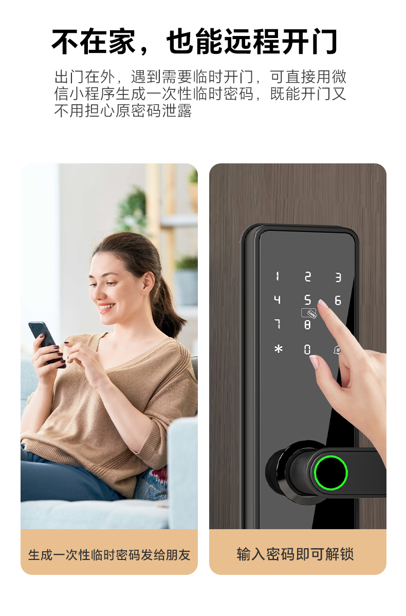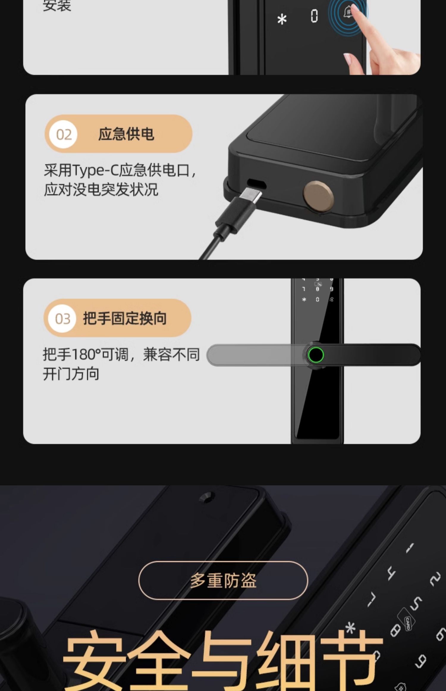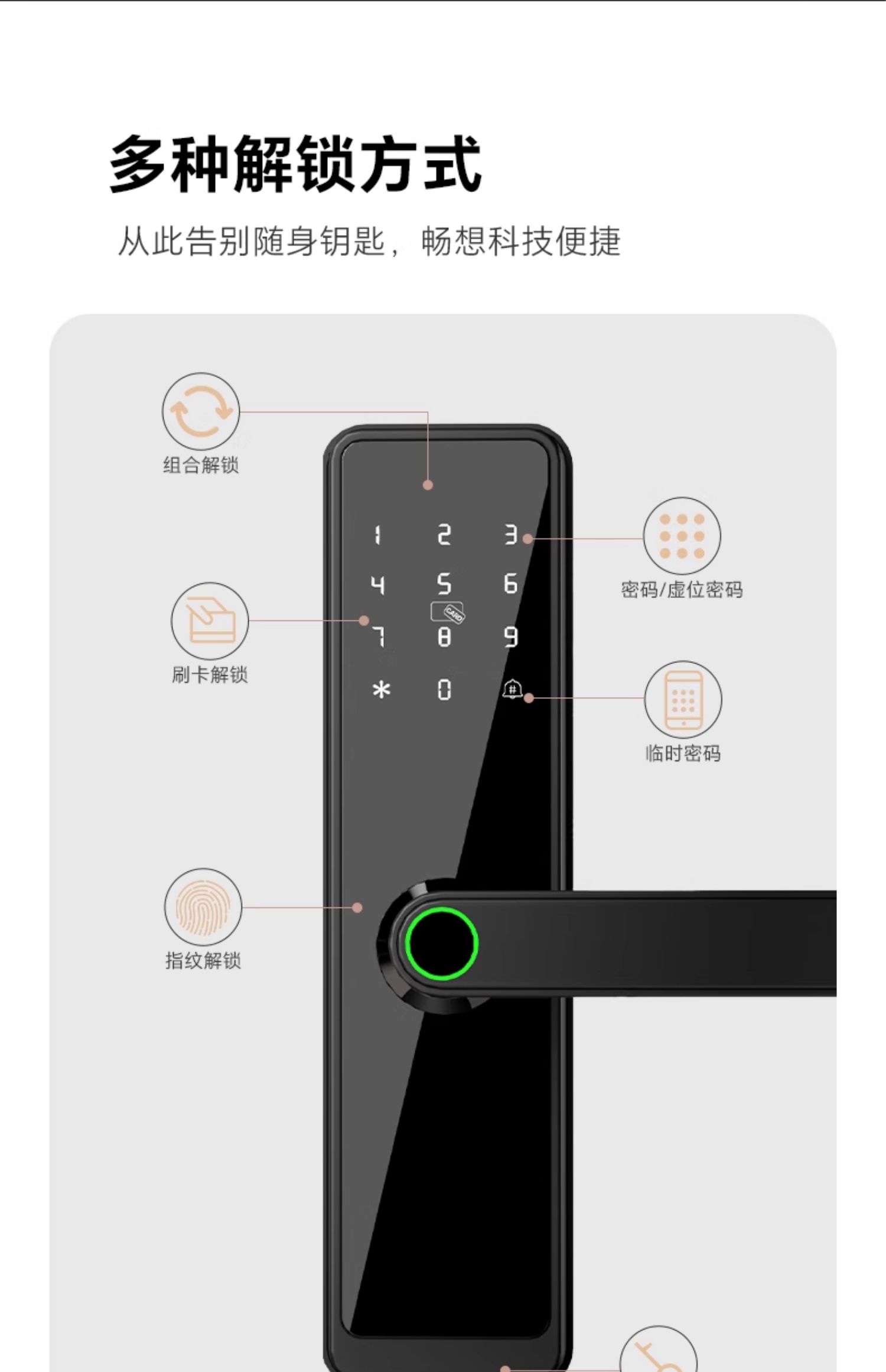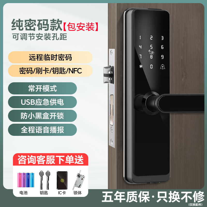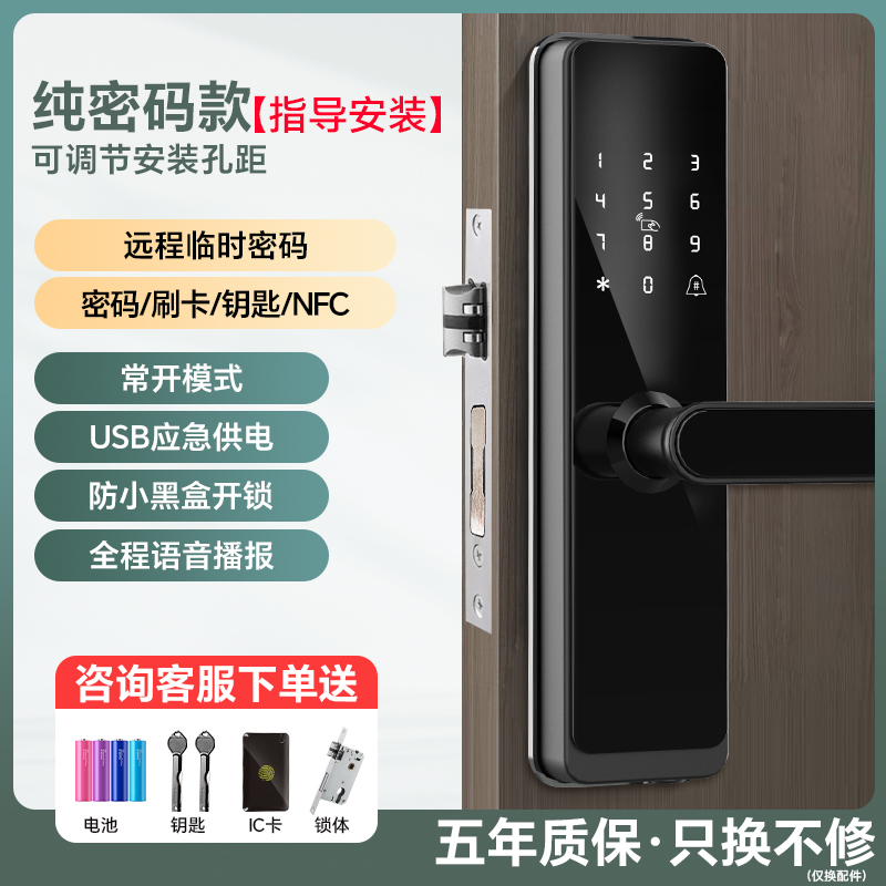• 가정용 표준 모델 - 구멍 간격 조정 가능 [지문 + 비밀번호 + 카드 스와이프 + 키 + NFC + 원격 임시 비밀번호] 무료 설치