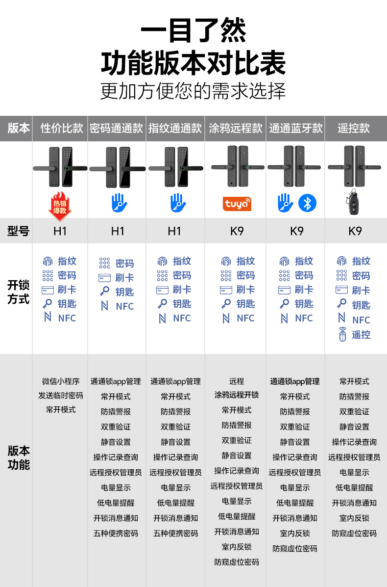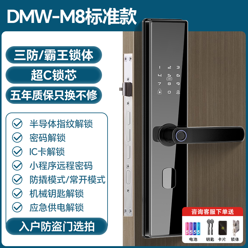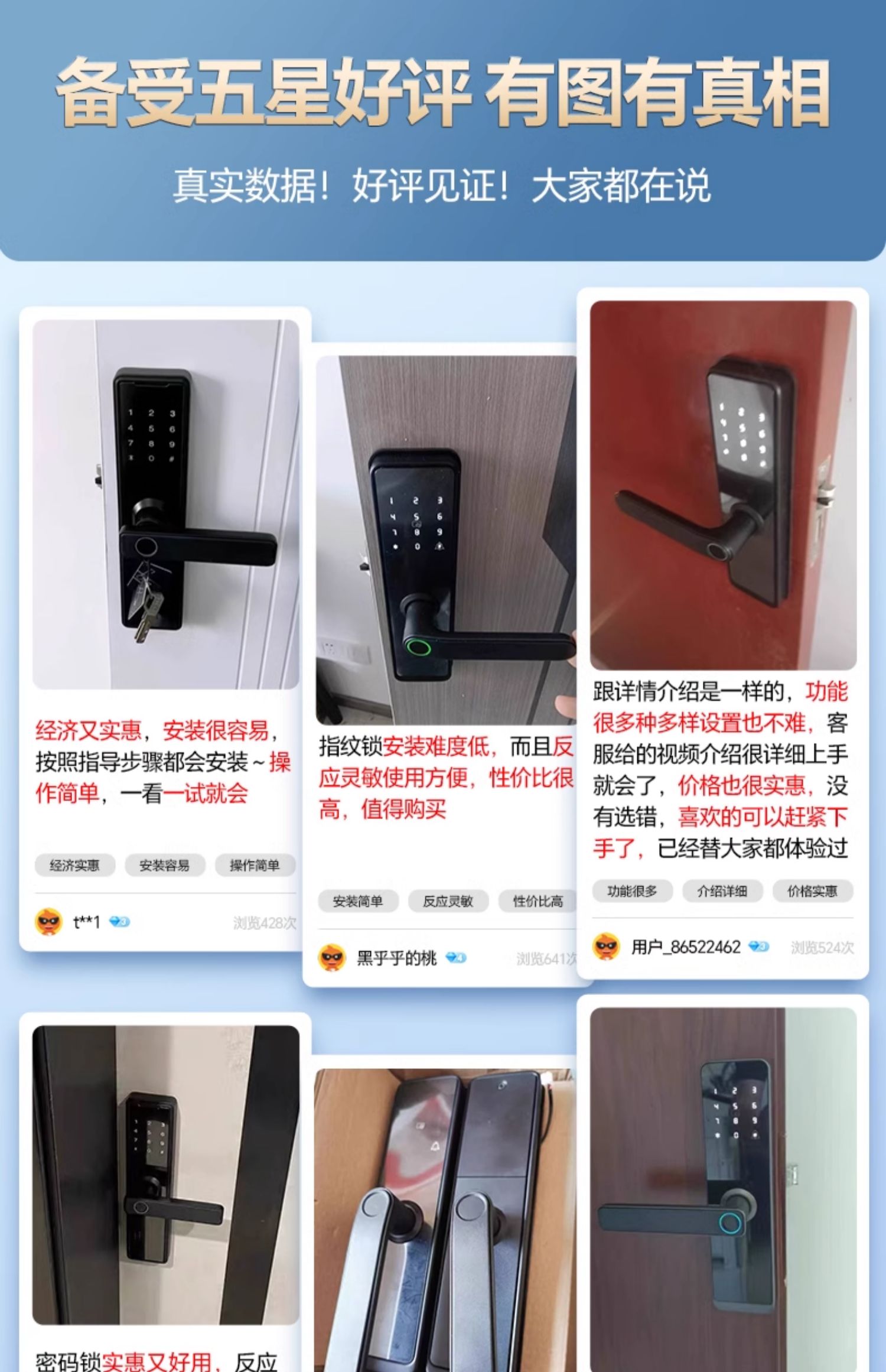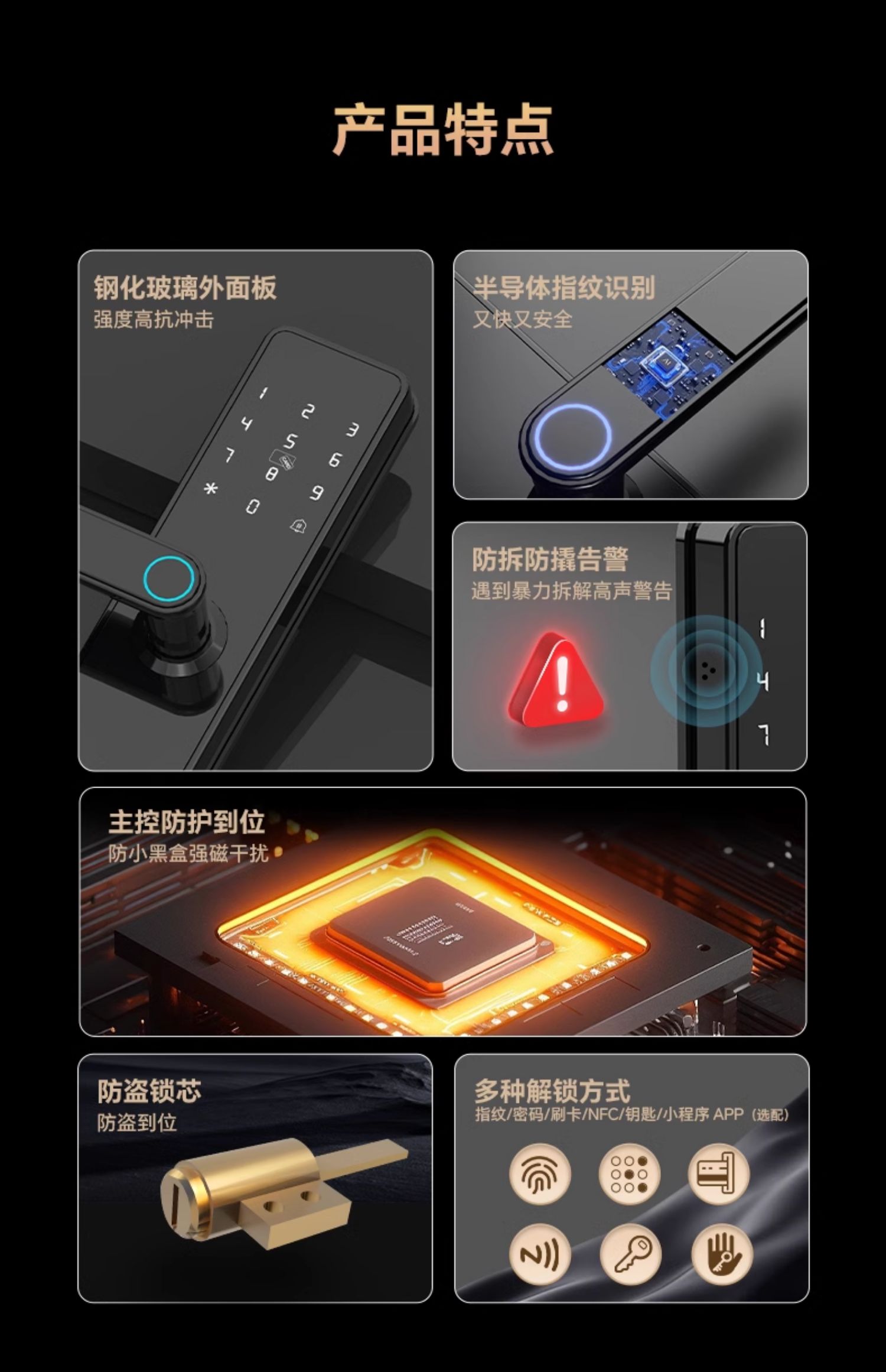 • 가정용 표준 모델 - 구멍 간격 조정 가능 [지문 + 비밀번호 + 카드 스와이프 + 키 + NFC + 원격 임시 비밀번호] 무료 설치