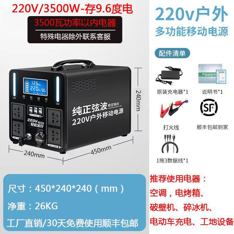 4000W 야외 모바일 전원 220v 고출력 휴대용 라이브 방송 스톨 냉장고 자율 주행 투어 대기 다기능