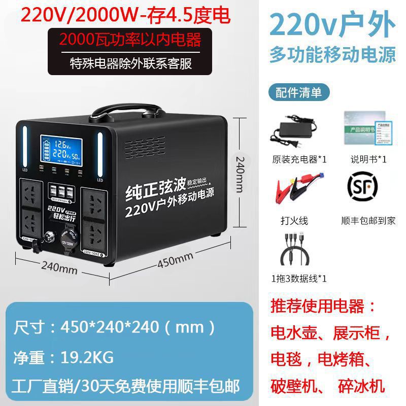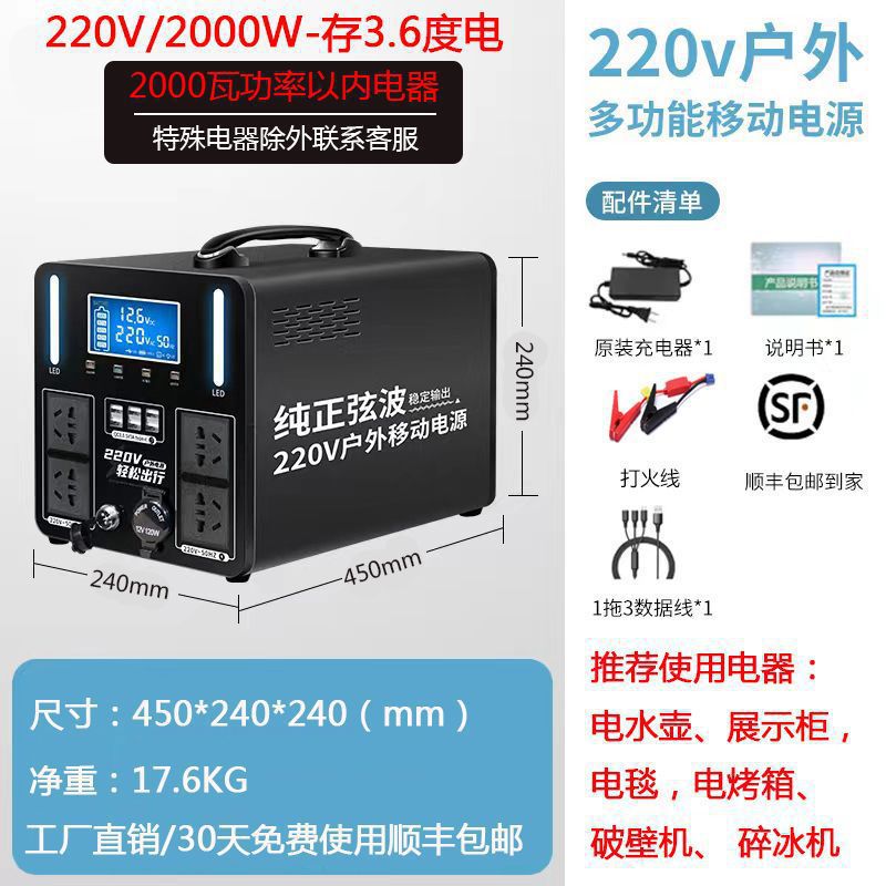 4000W 야외 모바일 전원 220v 고출력 휴대용 라이브 방송 스톨 냉장고 자율 주행 투어 대기 다기능스토어 가기