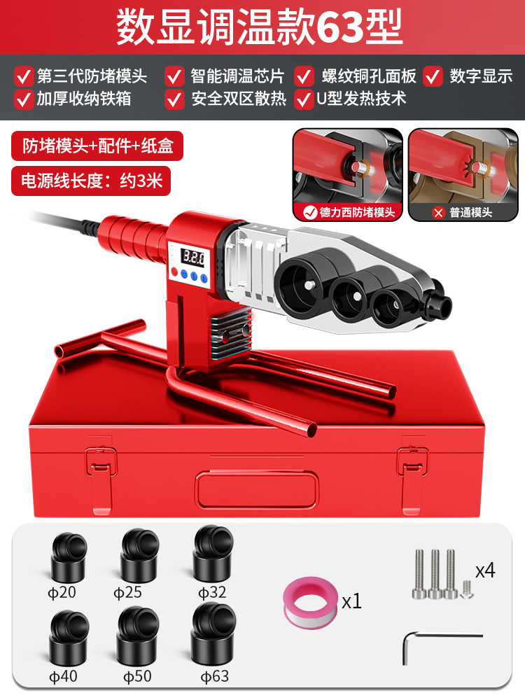 Delixi 핫 퓨저 PPR 수도관 가정용 열 용량 파이프 용접기 수력 공학 용접 기계 리튬 전기 뜨거운 녹는 기계스토어 가기
