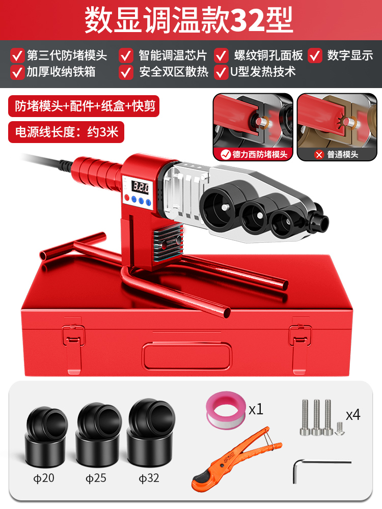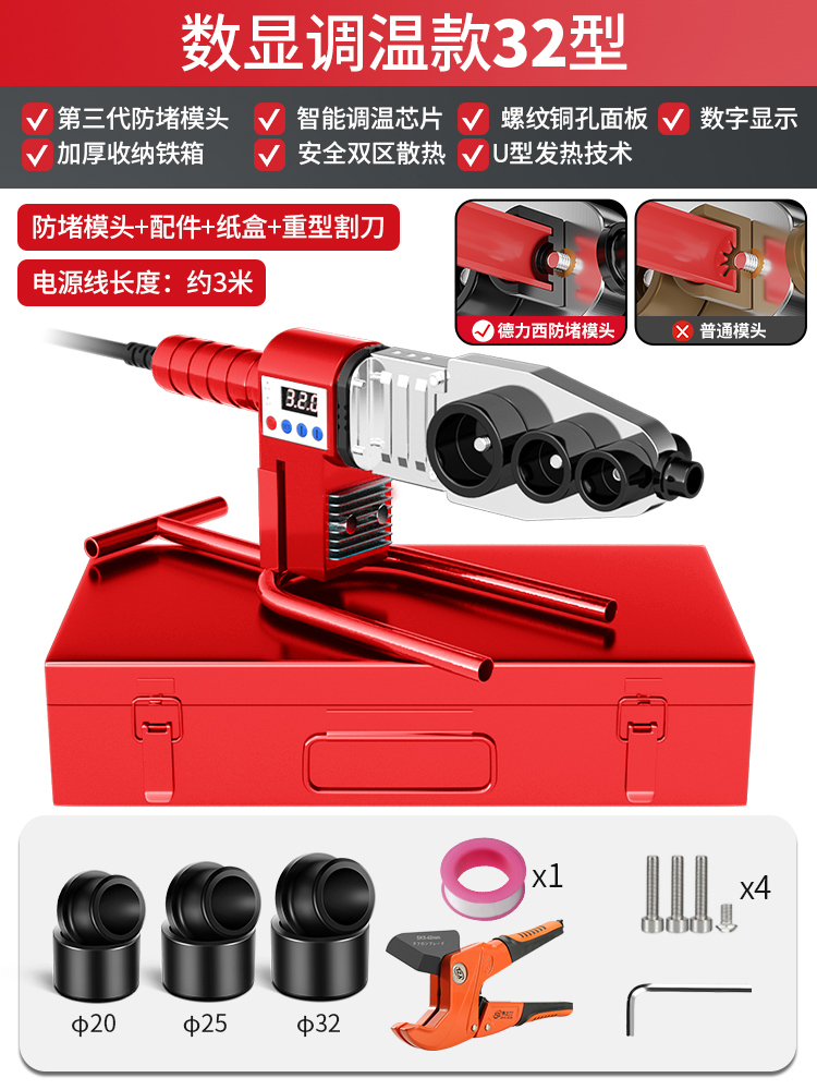 • [32 디지털 디스플레이 온도 조절 모델] 블랙 골드 막힘 방지 다이 헤드 + 철 상자 + 퀵 컷