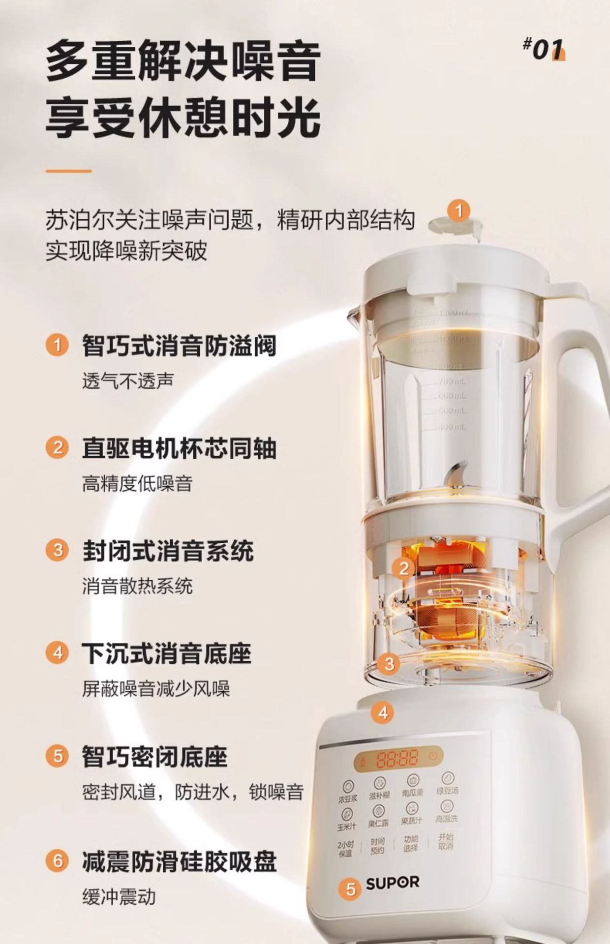 수포르 가정용 블렌더 두유 제조기 소형 전자동 다기능 블렌더 SPT201S