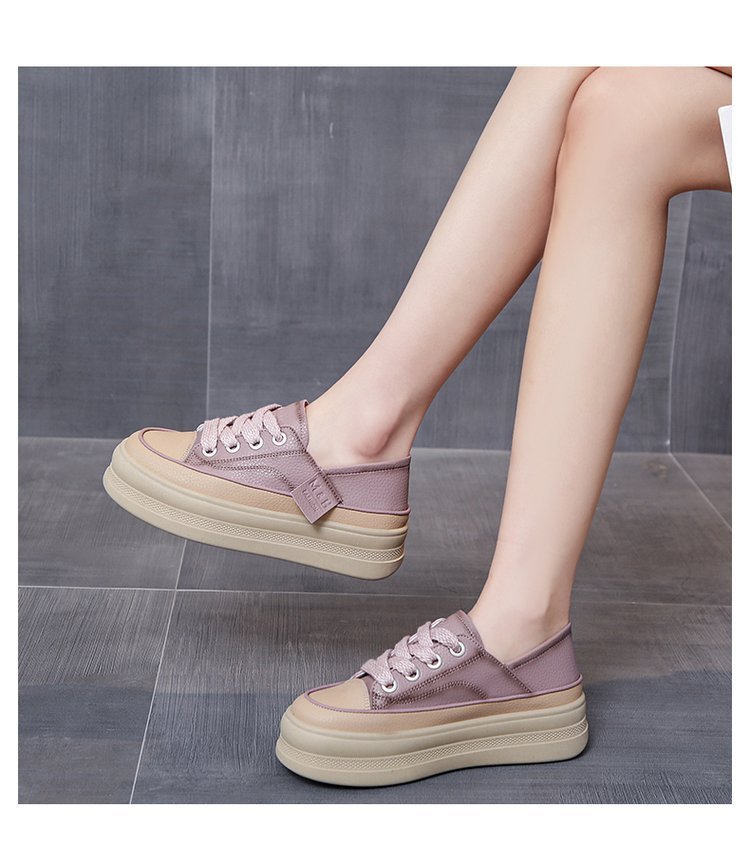 부드러운 바닥 작은 흰색 신발 여성 두 착용 두꺼운 바닥 신발 2025 봄 새로운 패션 통기성 올 매치 캐주얼 신발 조수스토어 가기