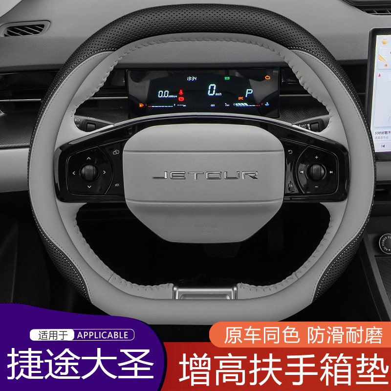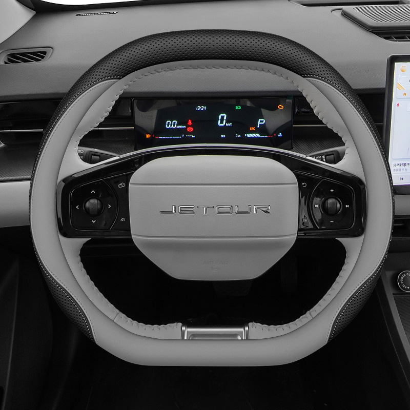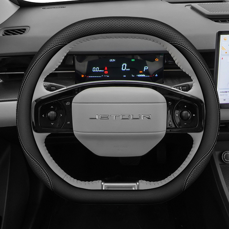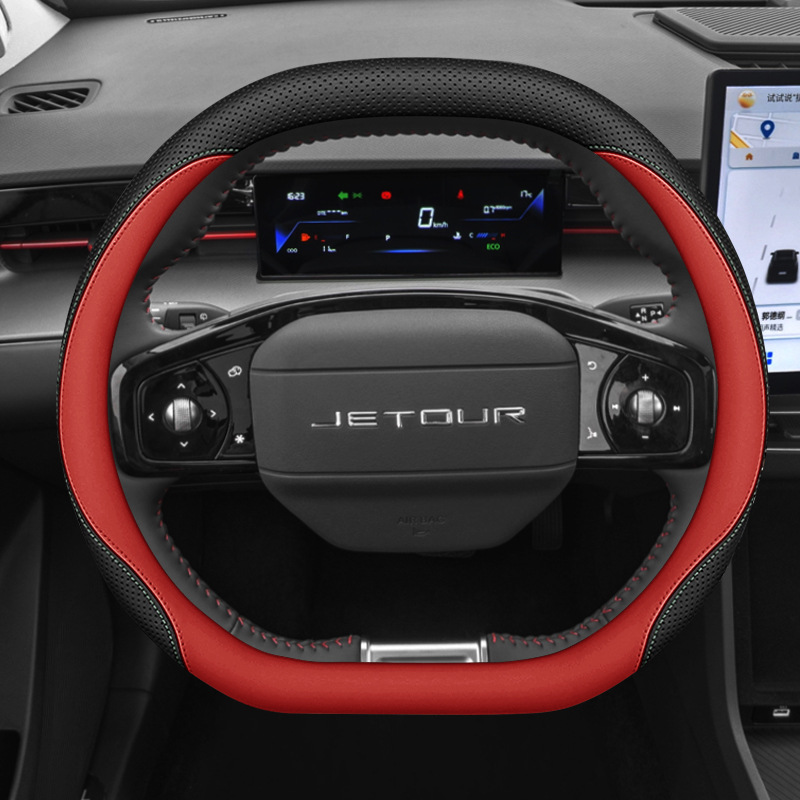 Jietu Dasheng 스티어링 휠 커버 Napa 가죽 미끄럼 방지 핸들 커버 손으로 수 놓은 무료 4 시즌 자동차 인테리어 수정에 적합