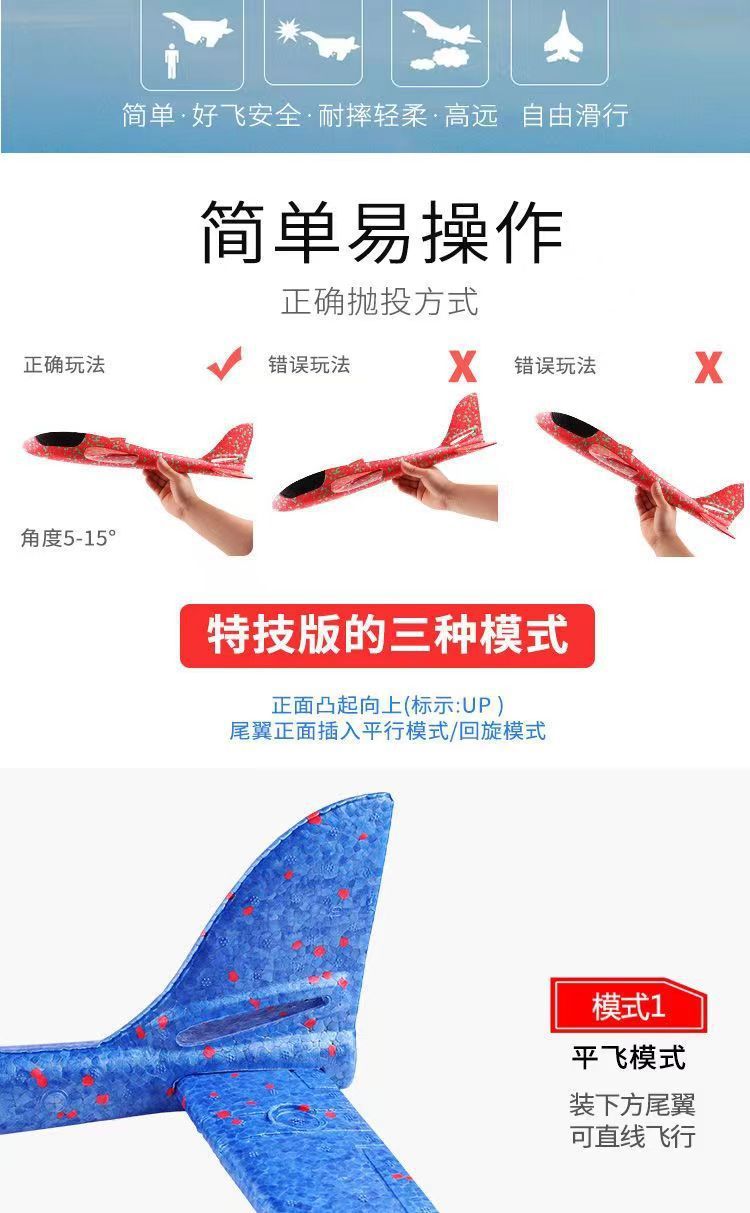 두꺼운 손 던지기 항공기 스턴트 스윙 폼 항공기 야외 부모-자식 대화 형 장난감 그물 붉은 떨림 장난감 도매스토어 가기
