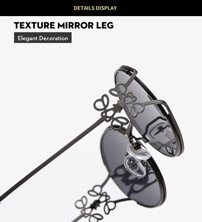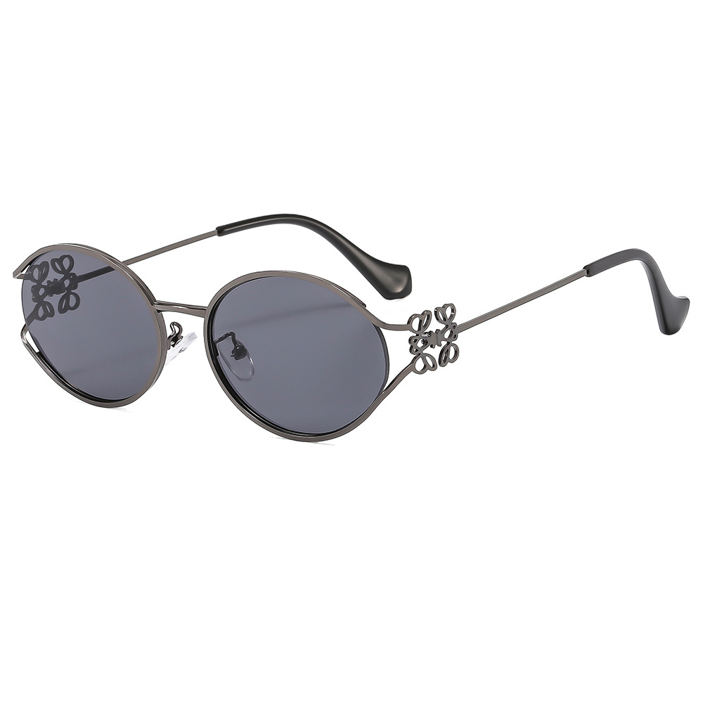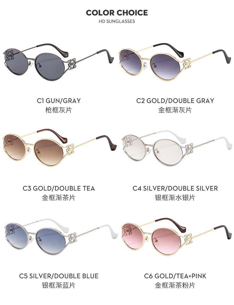 현대 패션쇼 온라인 인기 선글라스 고급 금속 중공 타원형 안경 국경 UV 보호 고급 선글라스스토어 가기