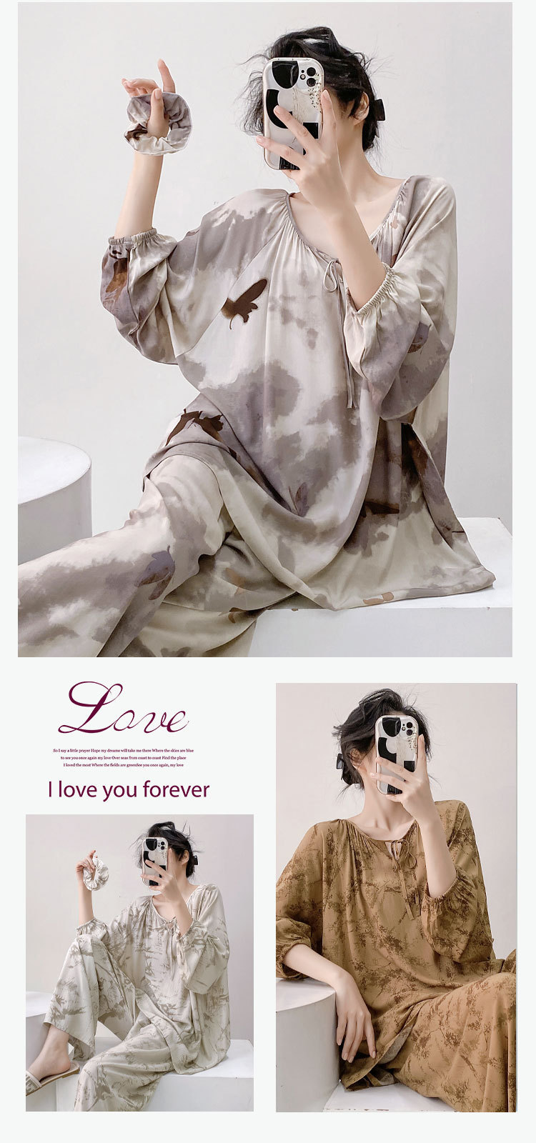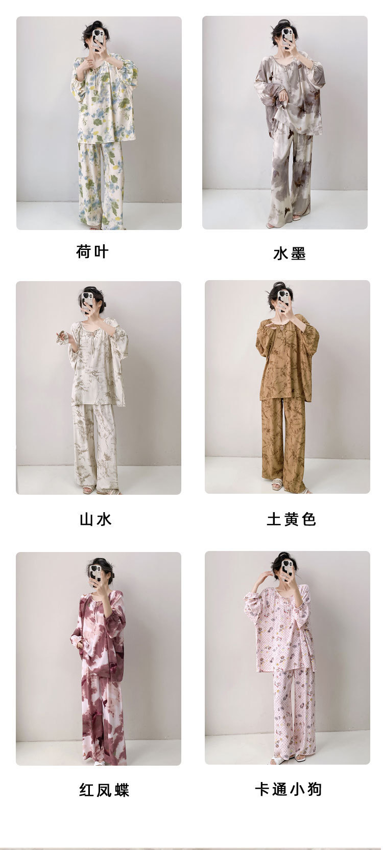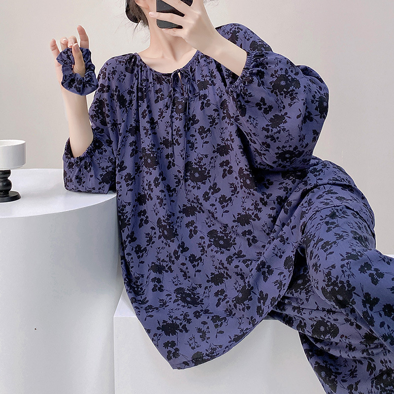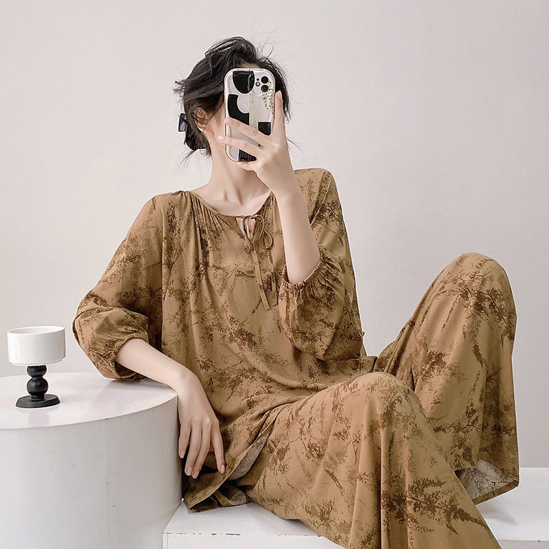 면 실크 파자마 여성의 봄과 가을 얇은 긴팔 플러스 사이즈 사이버 인기 세트 여름 새로운 도착 레이온 인쇄 에어컨 홈 의류스토어 가기