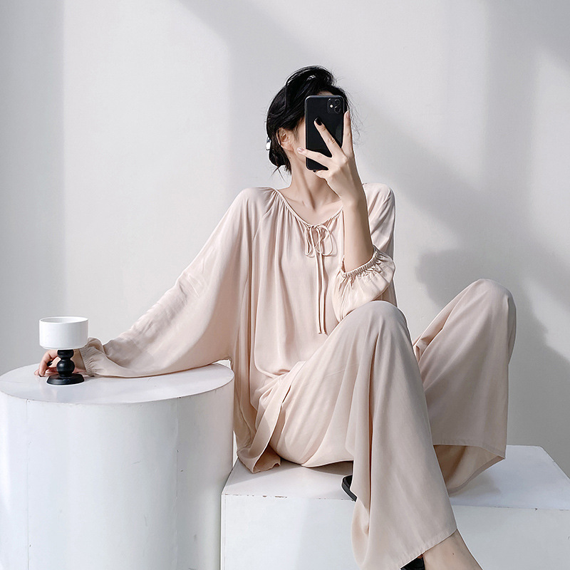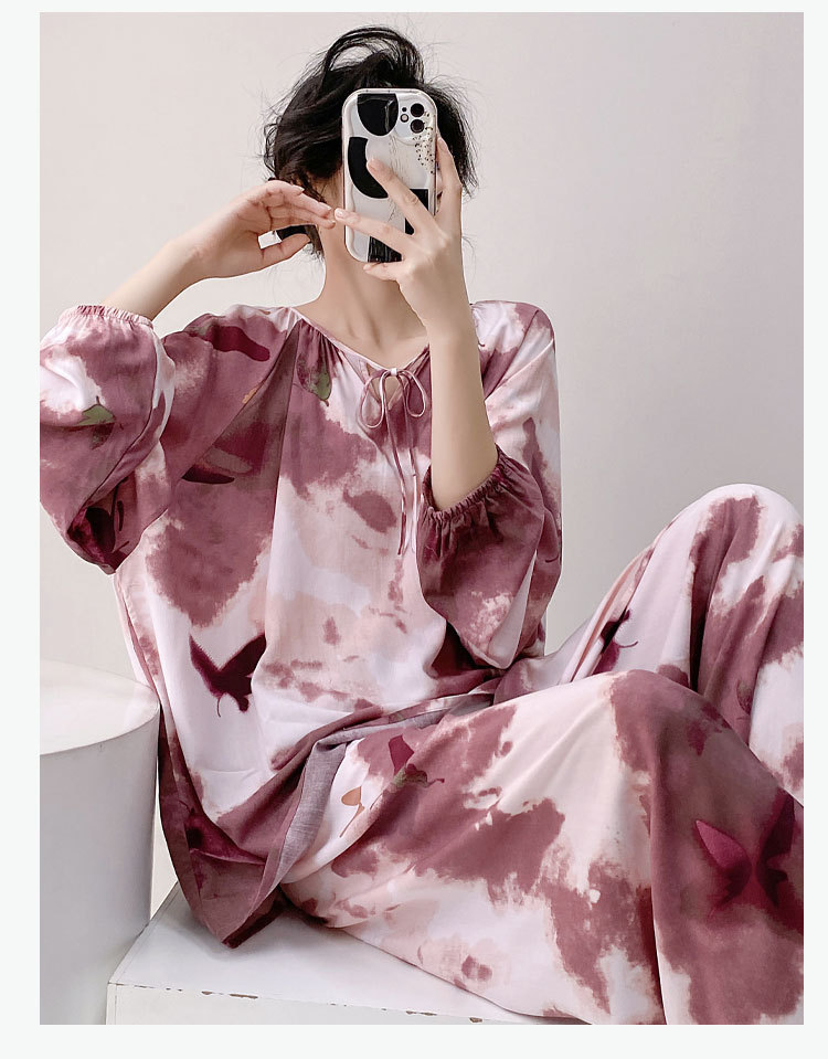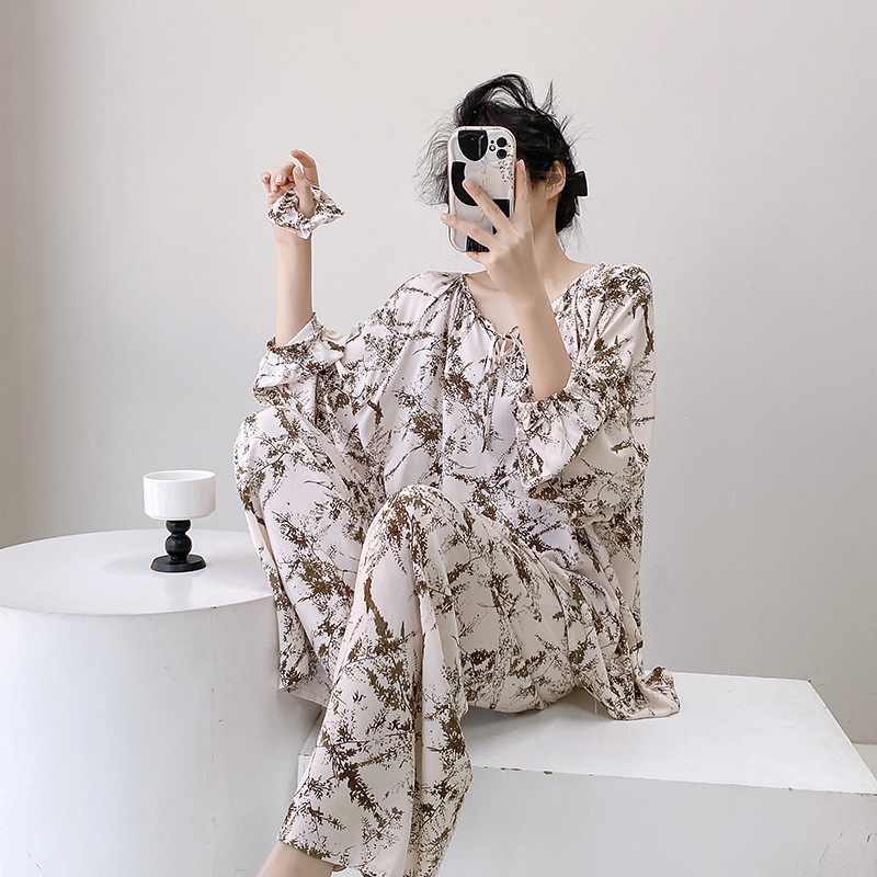 면 실크 파자마 여성의 봄과 가을 얇은 긴팔 플러스 사이즈 사이버 인기 세트 여름 새로운 도착 레이온 인쇄 에어컨 홈 의류