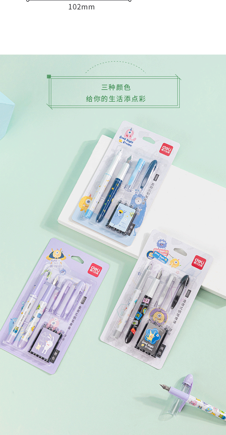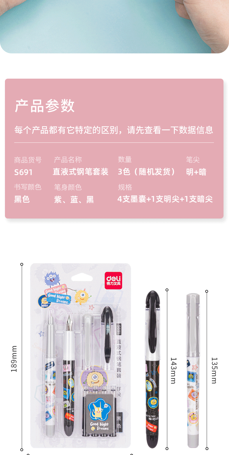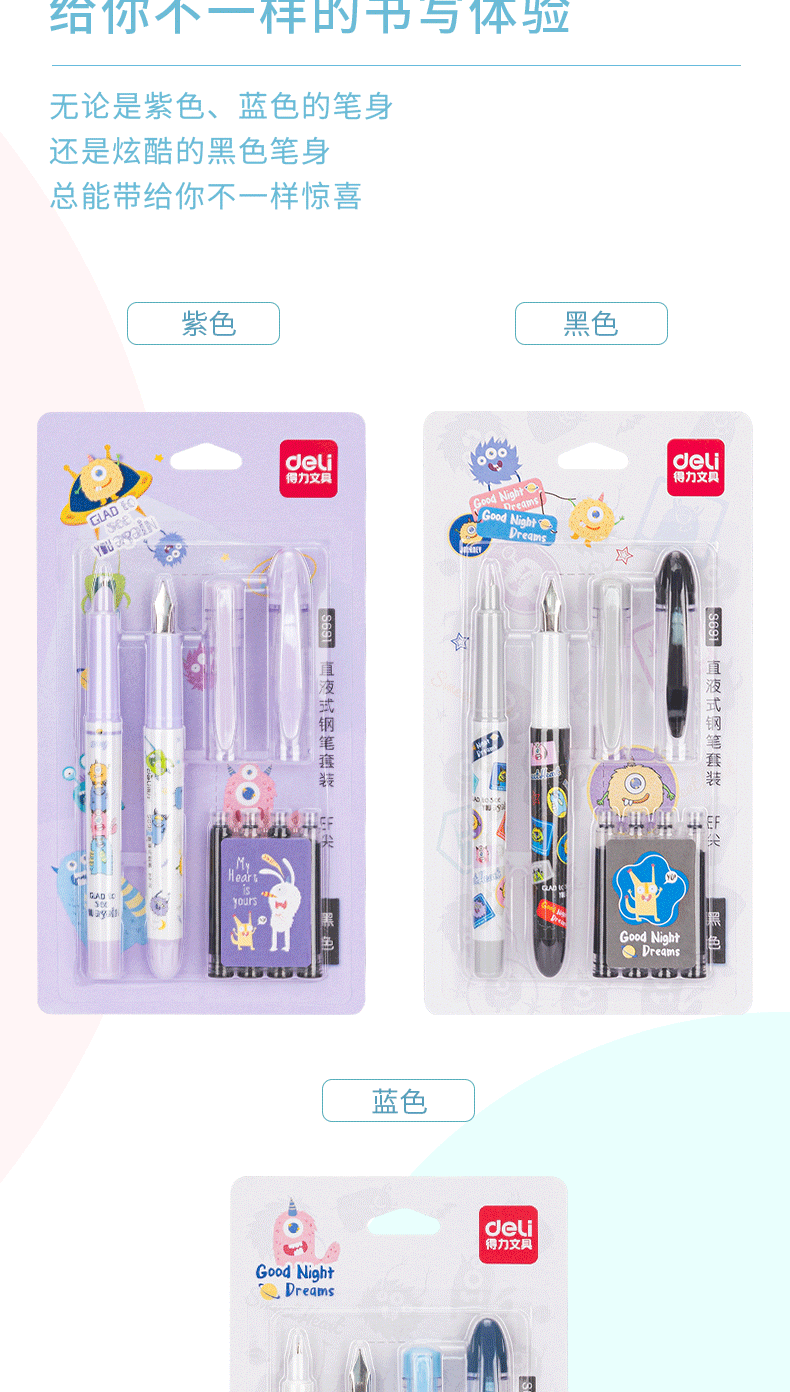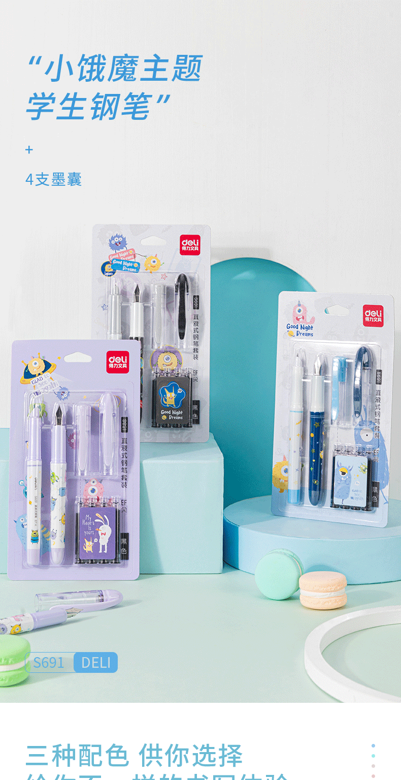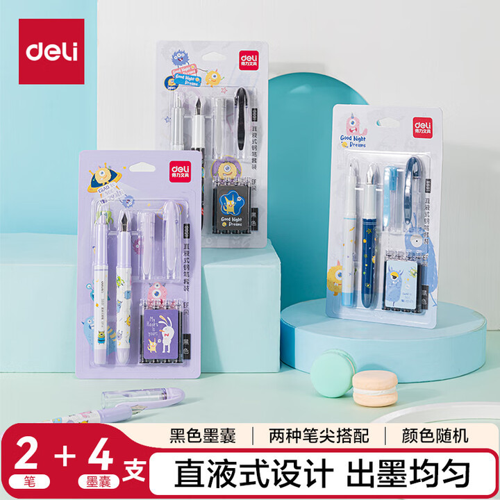 Deli S691 학생 펜 지울 수있는 순수 블루 잉크 Sac 펜 세트 초등학생을위한 블랙 펜스토어 가기