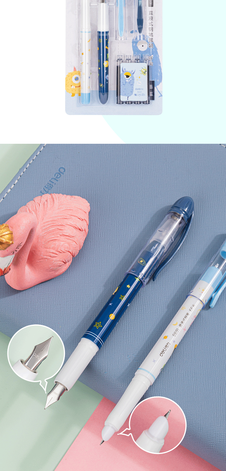 Deli S691 학생 펜 지울 수있는 순수 블루 잉크 Sac 펜 세트 초등학생을위한 블랙 펜