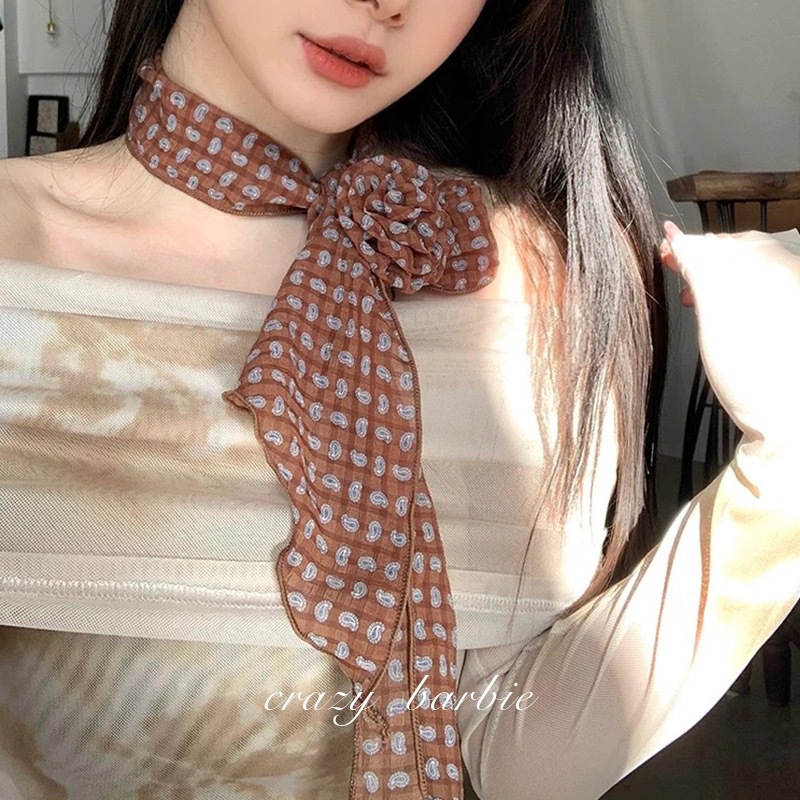 봄과 여름 2025 분리 가능한 복고풍 꽃 스카프 여성의 빛 럭셔리 우아한 긴 스카프 액세서리 긴 리본 얇은