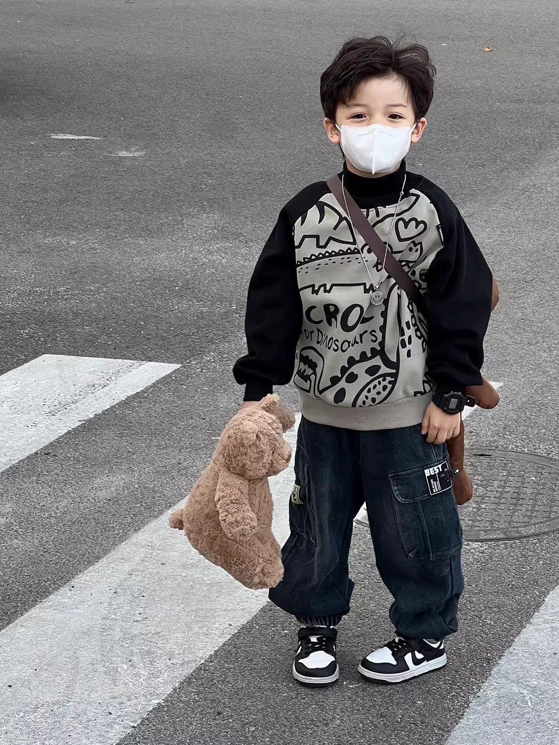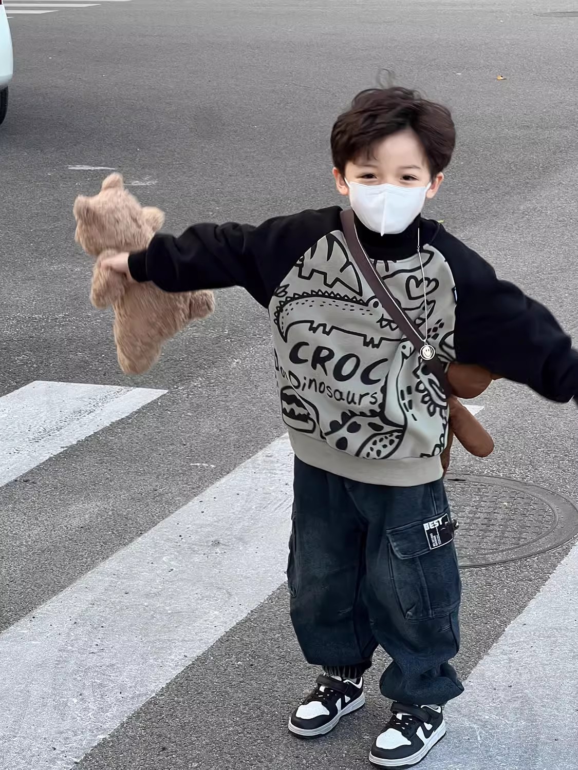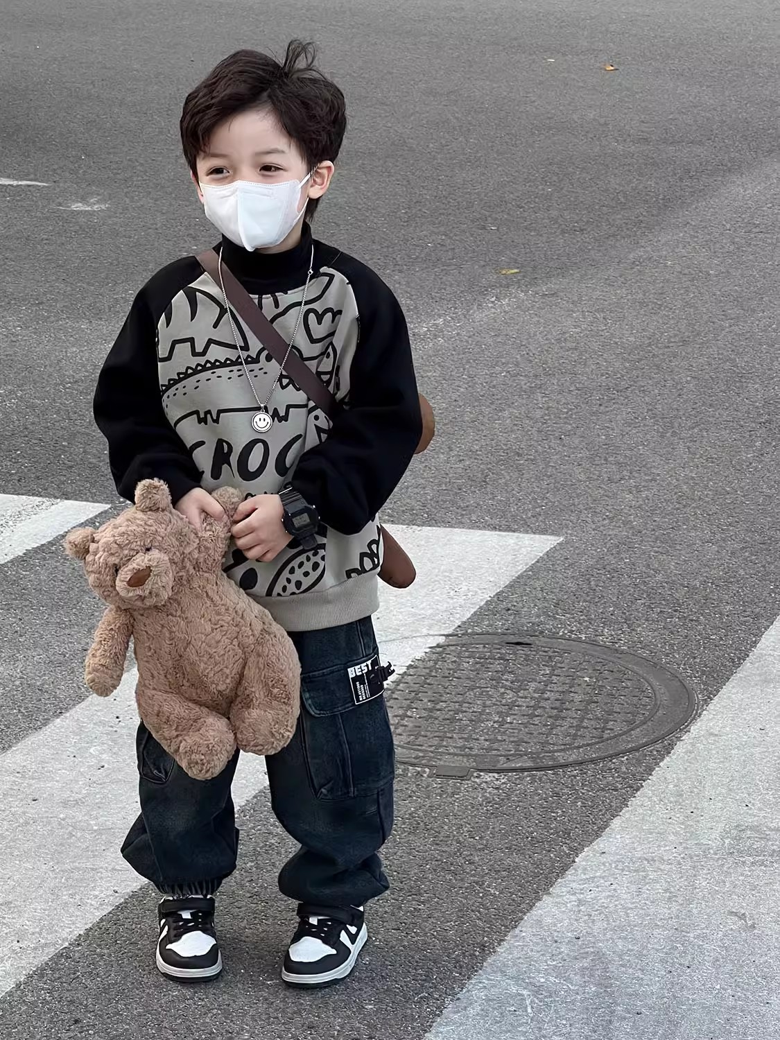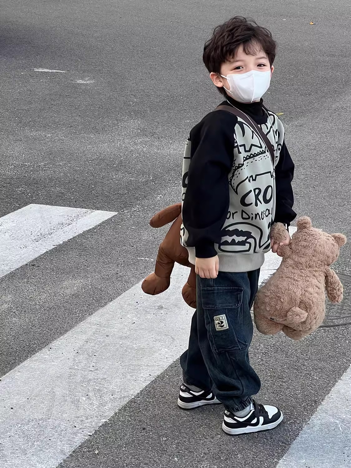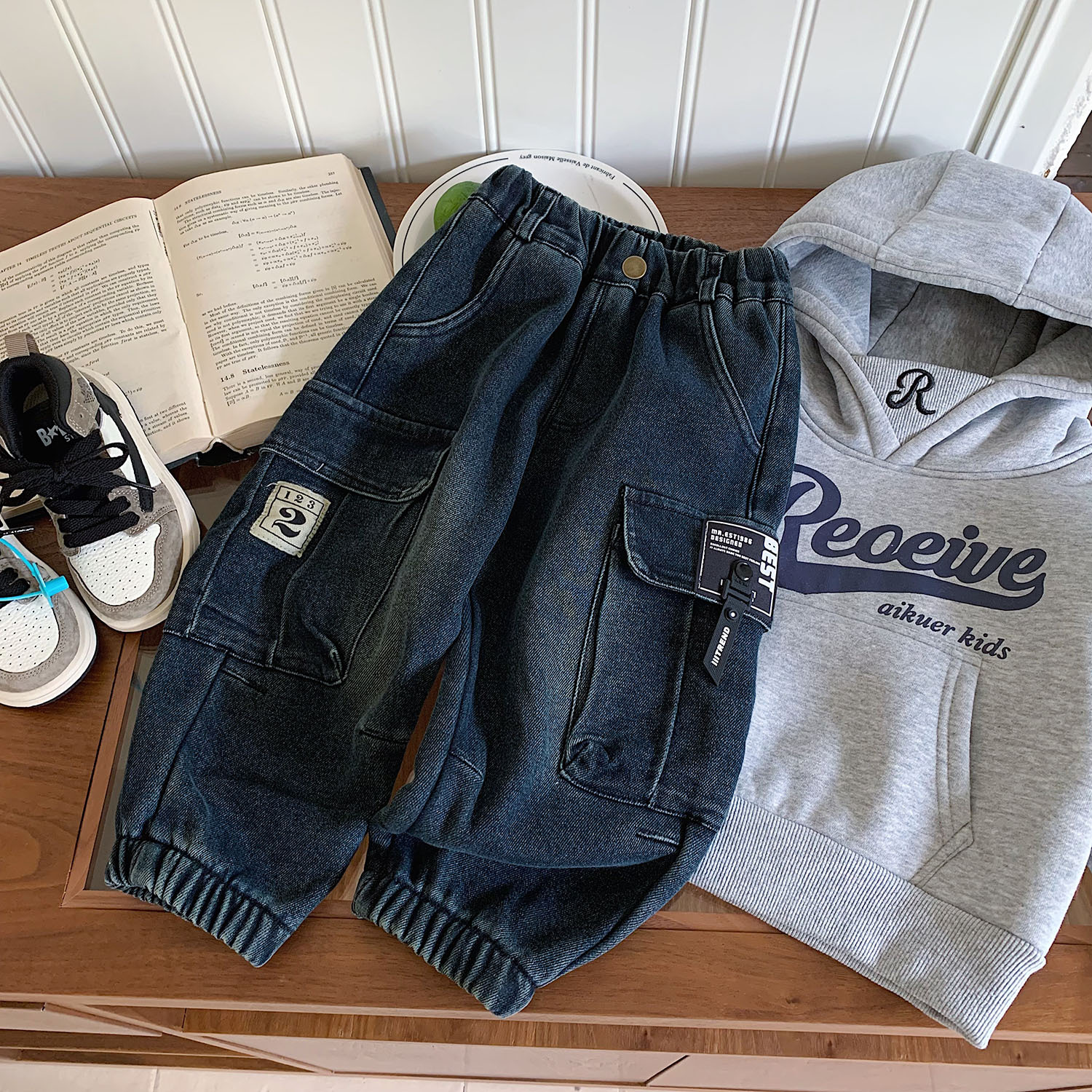 소년 청바지 봄과 가을 2025 새로운 서양식 아기 소녀 어린이 쿠션 바지 봄 스트레이트 바지 어린이스토어 가기