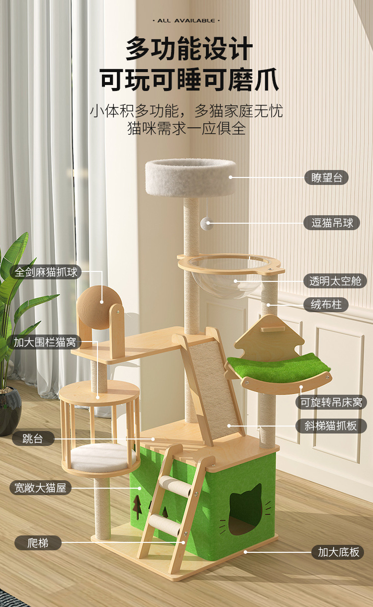 고양이 등반 랙 고양이 둥지 고양이 나무 통합 고양이 고양이 나무 열 점프 플랫폼 고양이 빌라 공간 캡슐 바닥없는 기둥 고양이 장난감스토어 가기