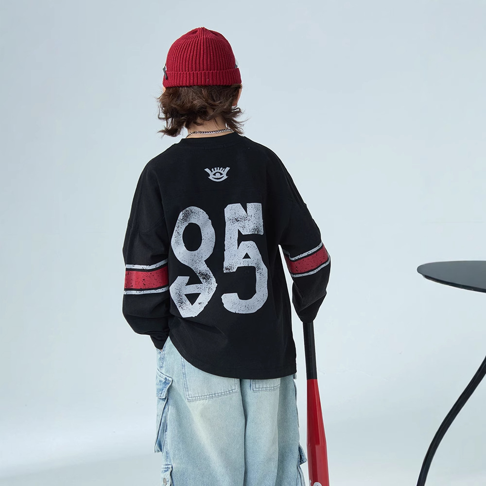 소년 긴 소매 티셔츠 봄과 가을 2025 새로운 어린이 봄 옷베이스 셔츠 큰 소년 봄 얇은 스웨터 트렌디스토어 가기