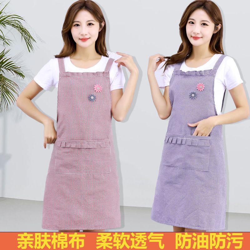 순수한 면화 앞치마 여성면 및 린넨 스트랩 허리 주방 가정용 안티 오일 얼룩 오버홀 성인 통기성 귀여운 작업복스토어 가기