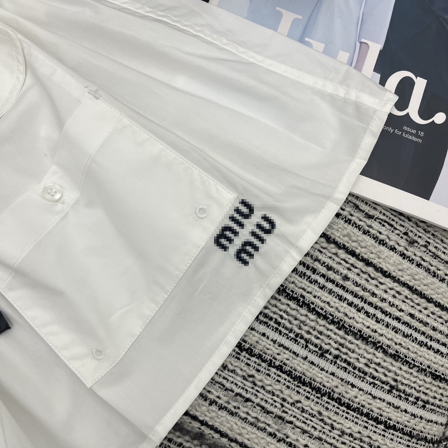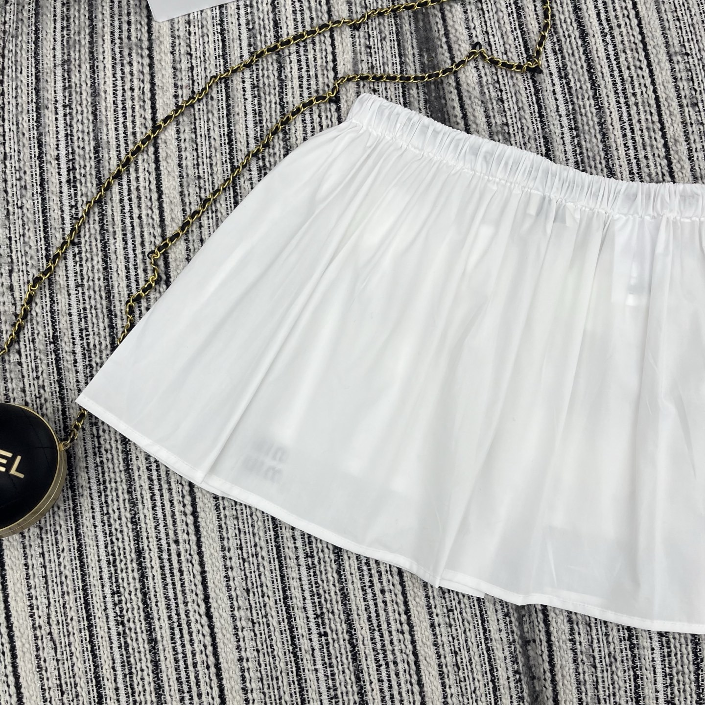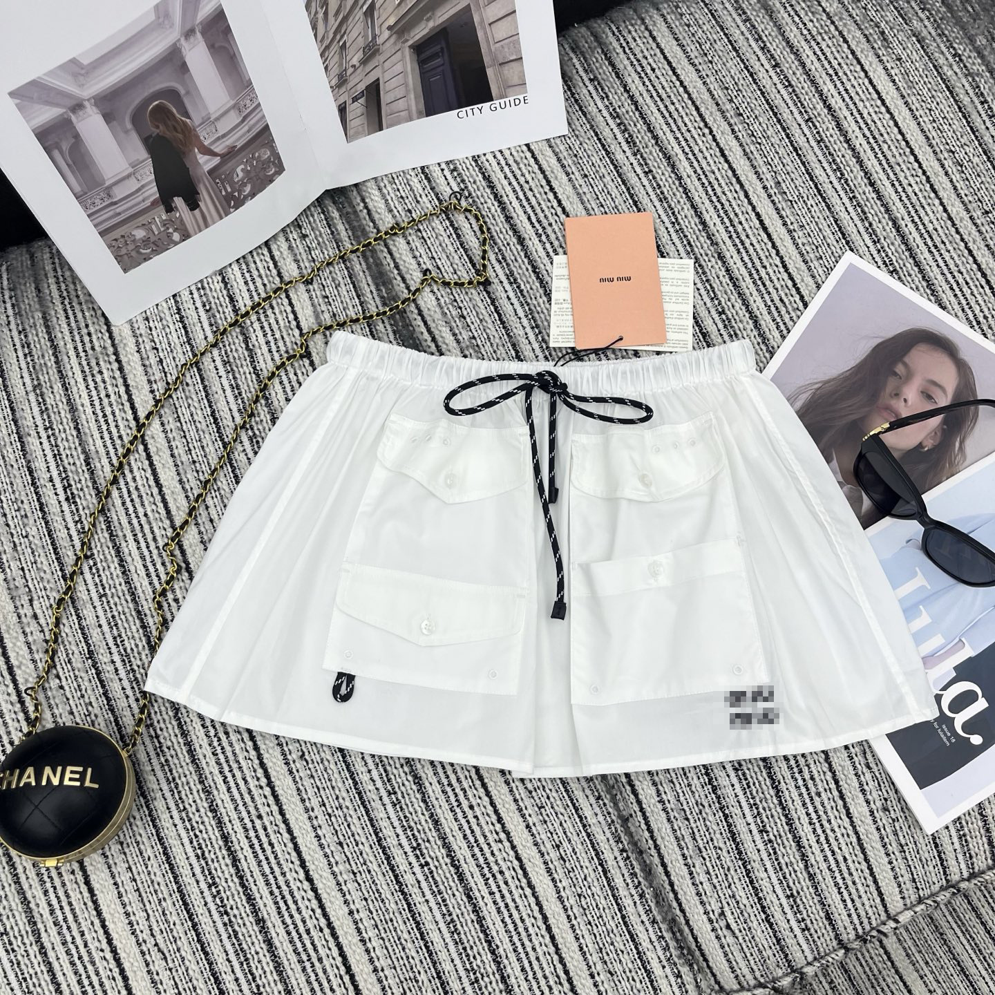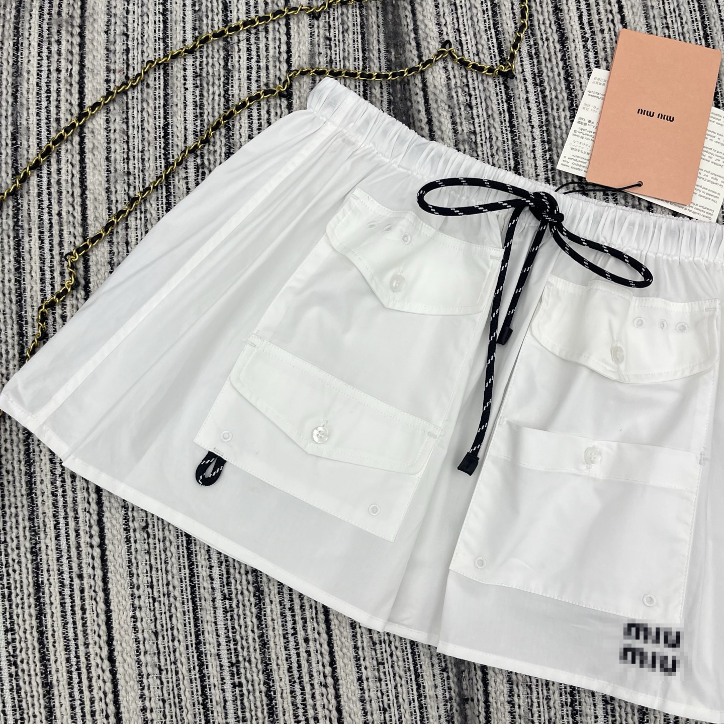 多口袋细节与侧边的迷你字母徽标相呼应为纯白裙身注入复古活力。