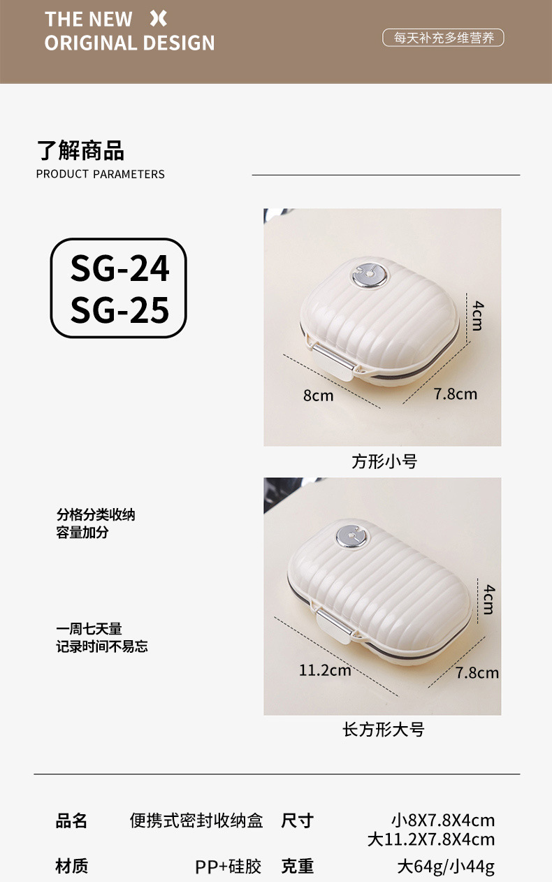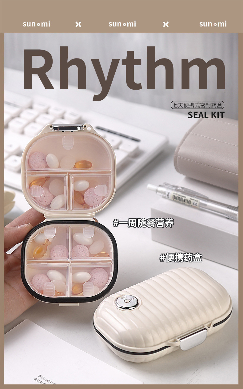 작은 약 상자 저장 약 상자가있는 휴대용 약 상자 일주일에 7 일 세 끼 서브 박스