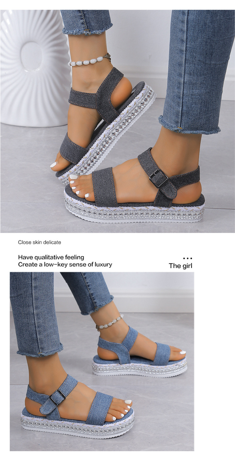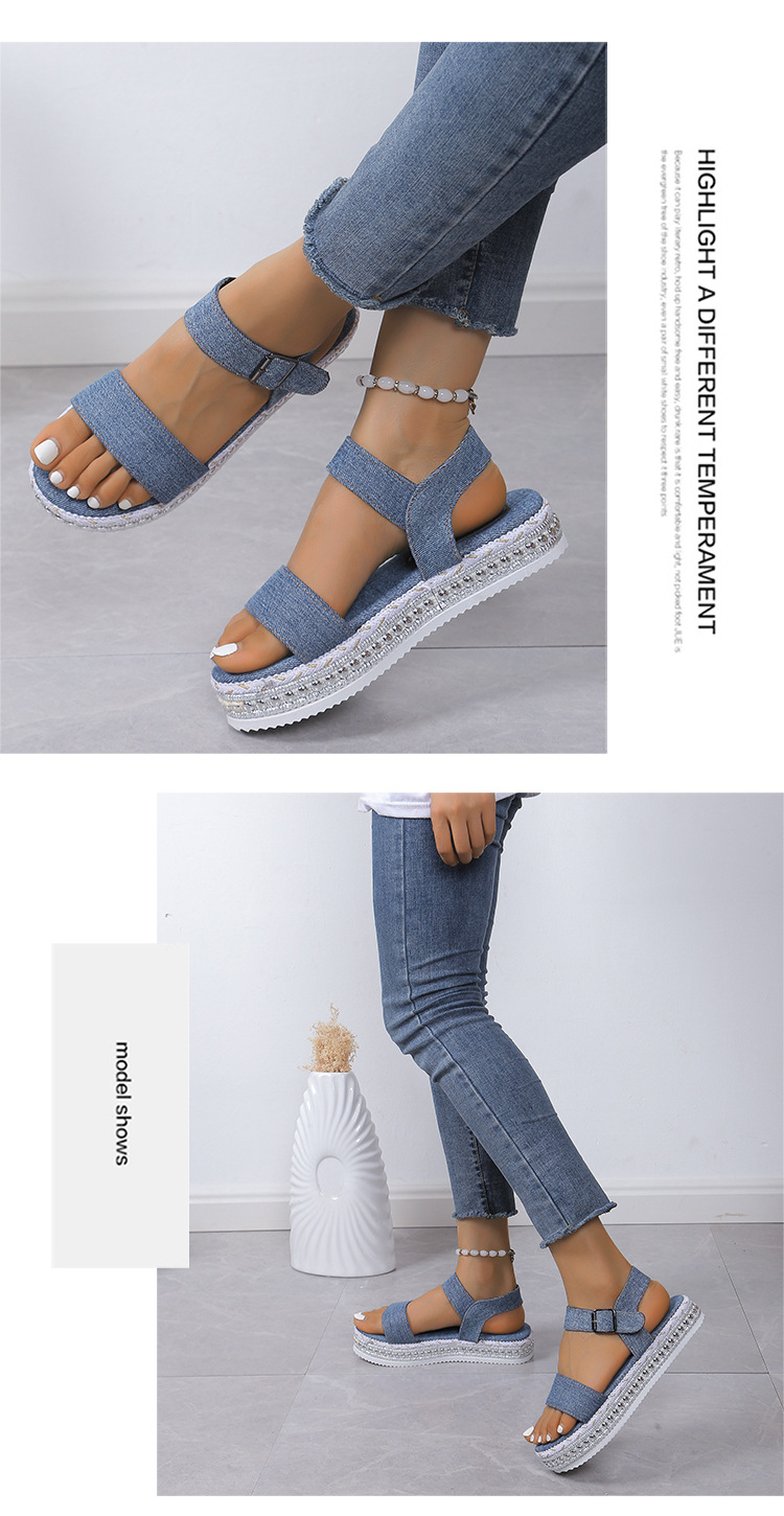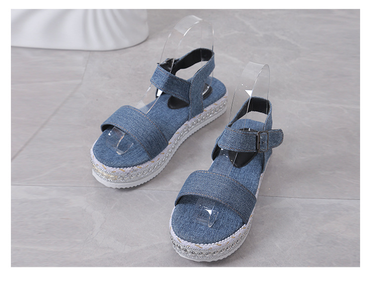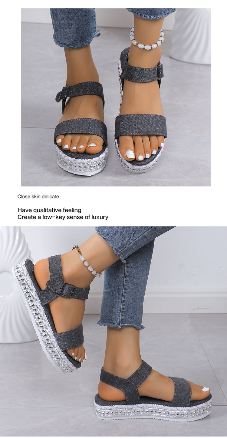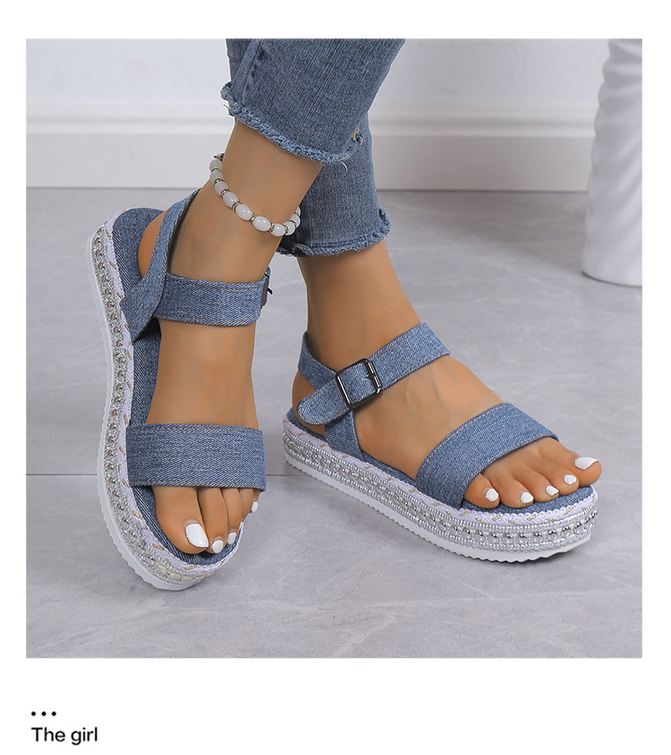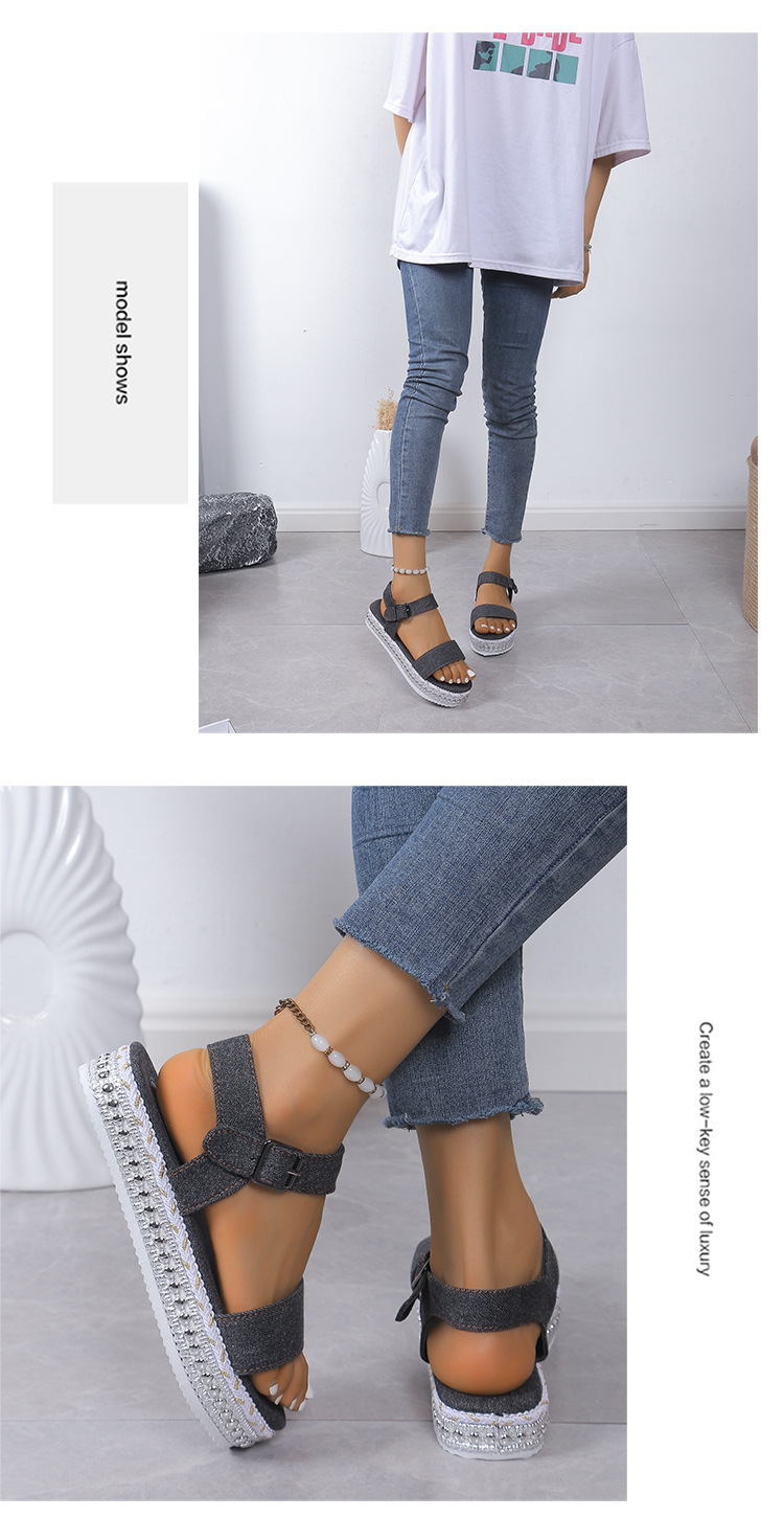 대외 무역 대형 두꺼운 밑창 샌들 여성 2025 여름 새로운 패션 짠 벨트 솔리드 컬러 편안한 비치 샌들 배치스토어 가기