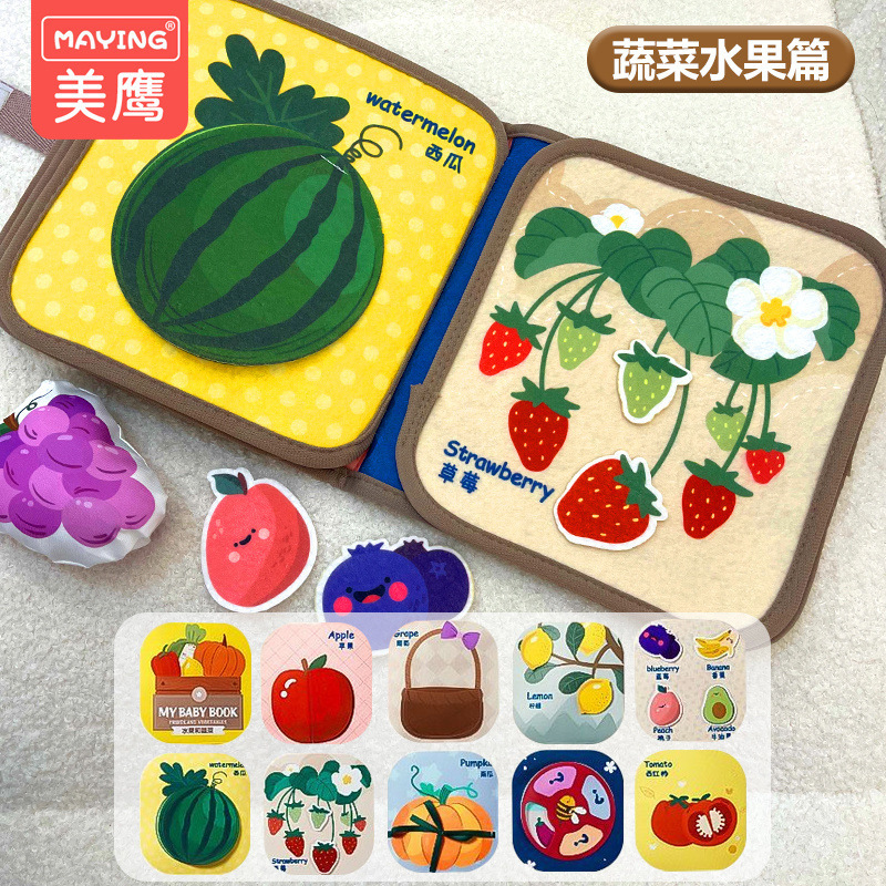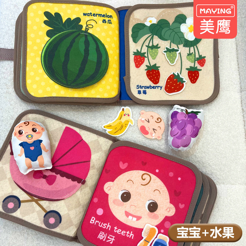 • 색칠된 작은 천 책 [과일 알아보기]에는 딸랑이 종이가 포함되어 있습니다.