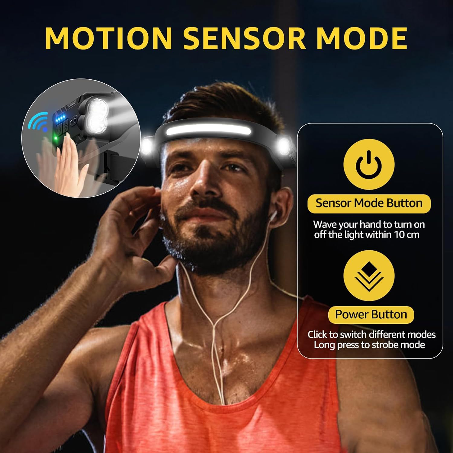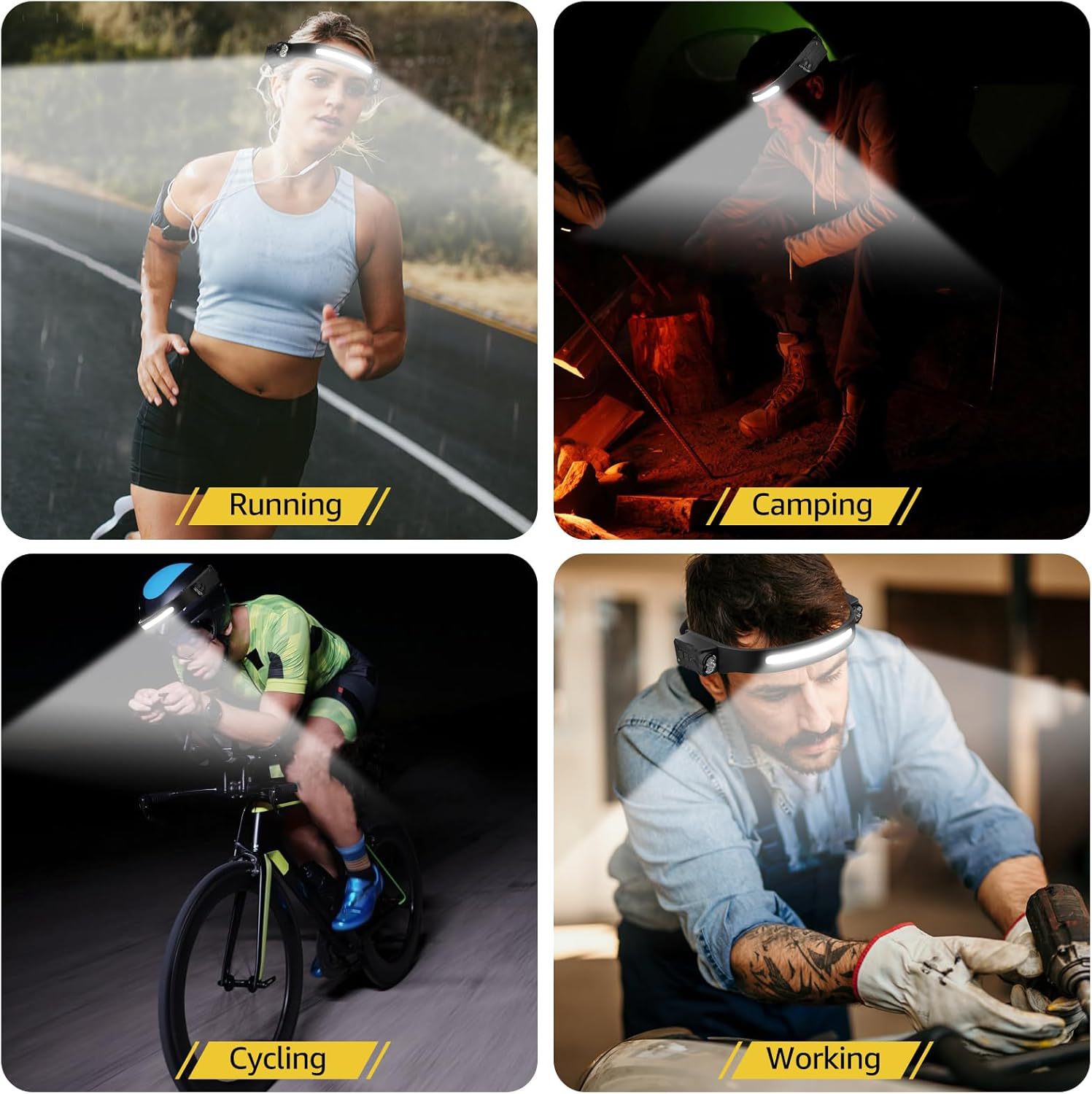 국경 간 새로운 실리콘 더블 헤드 조절 가능한 COB 헤드 라이트 충전식 야간 달리기 야생 캠핑 유도 헤드 램프