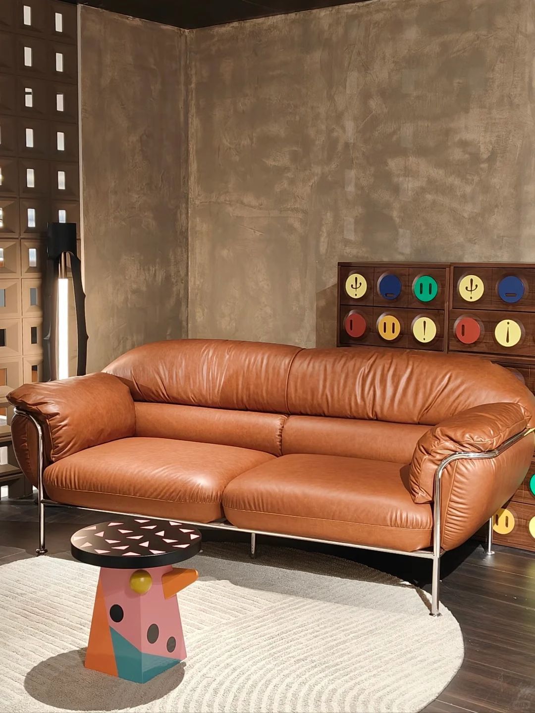 바우 하우스 스타일 복싱 소파 레트로 오일 왁스 스트레이트 로우 거실 홈 멀티 사람 소파 라이트 럭셔리 중간 고대 가죽 소파스토어 가기