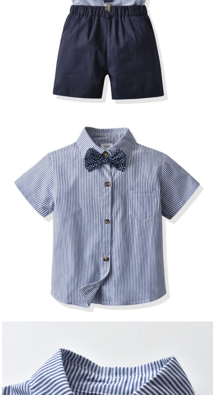 꽃 소녀 여름 소년 푸른 줄무늬 반팔 셔츠 나비 넥타이 스트랩 신사 세트 어린이 아기 세트 원피스스토어 가기