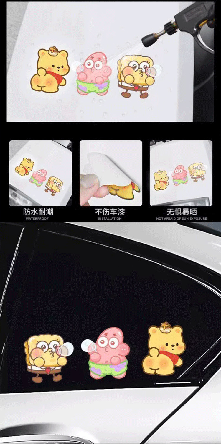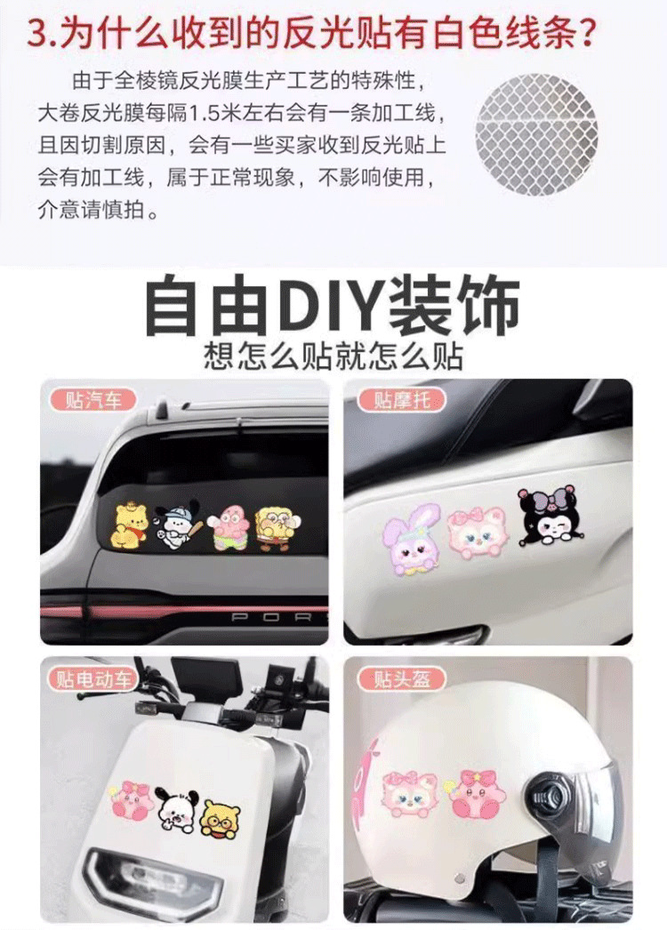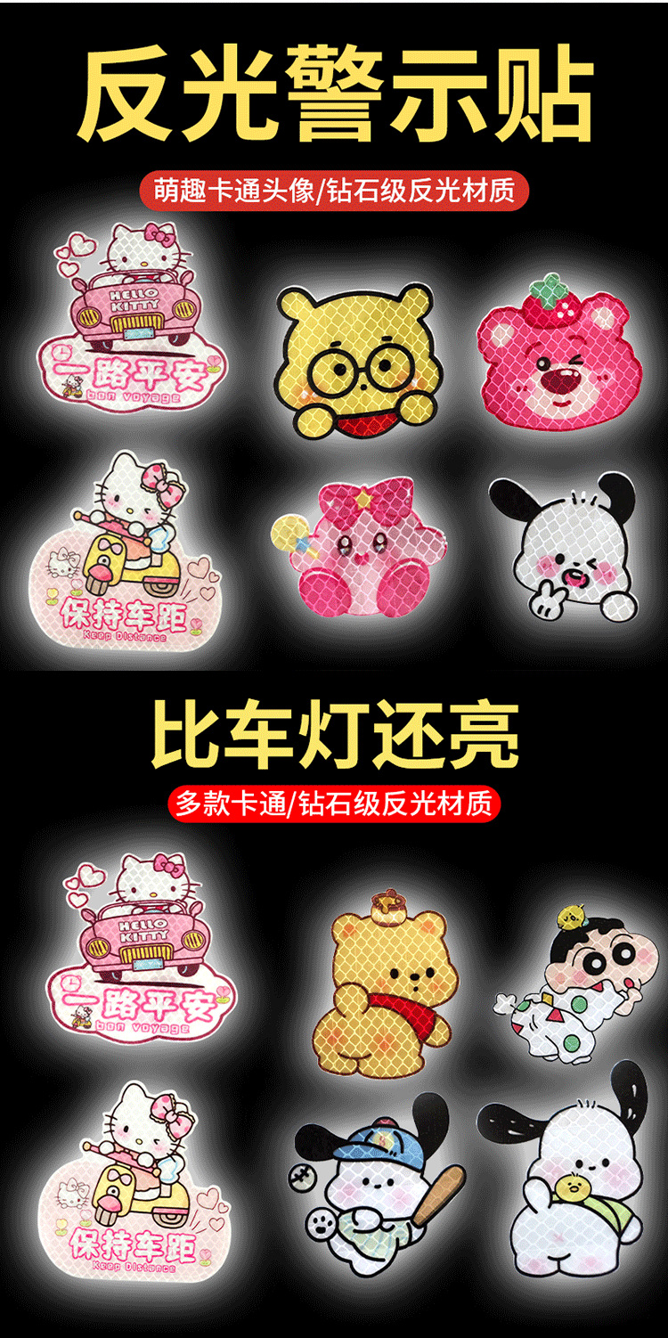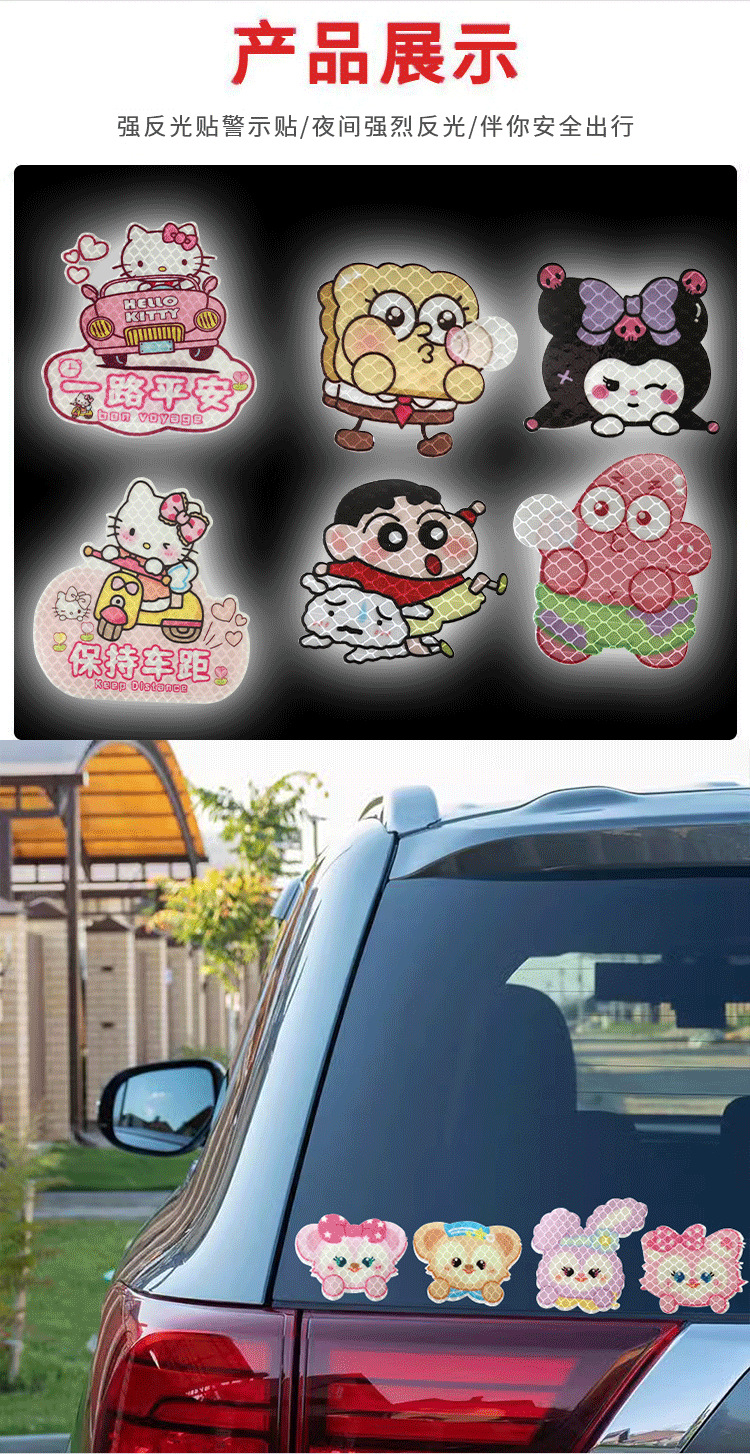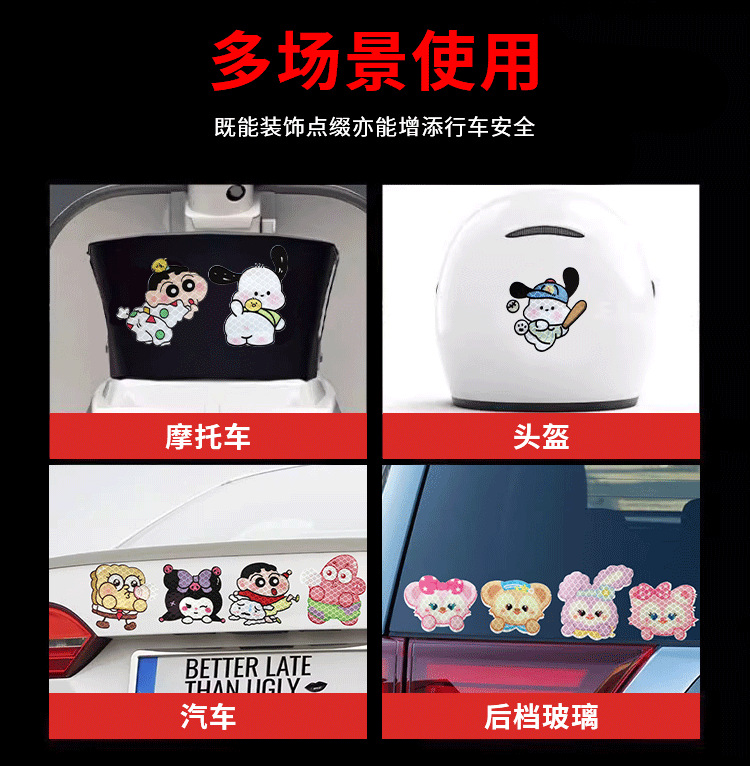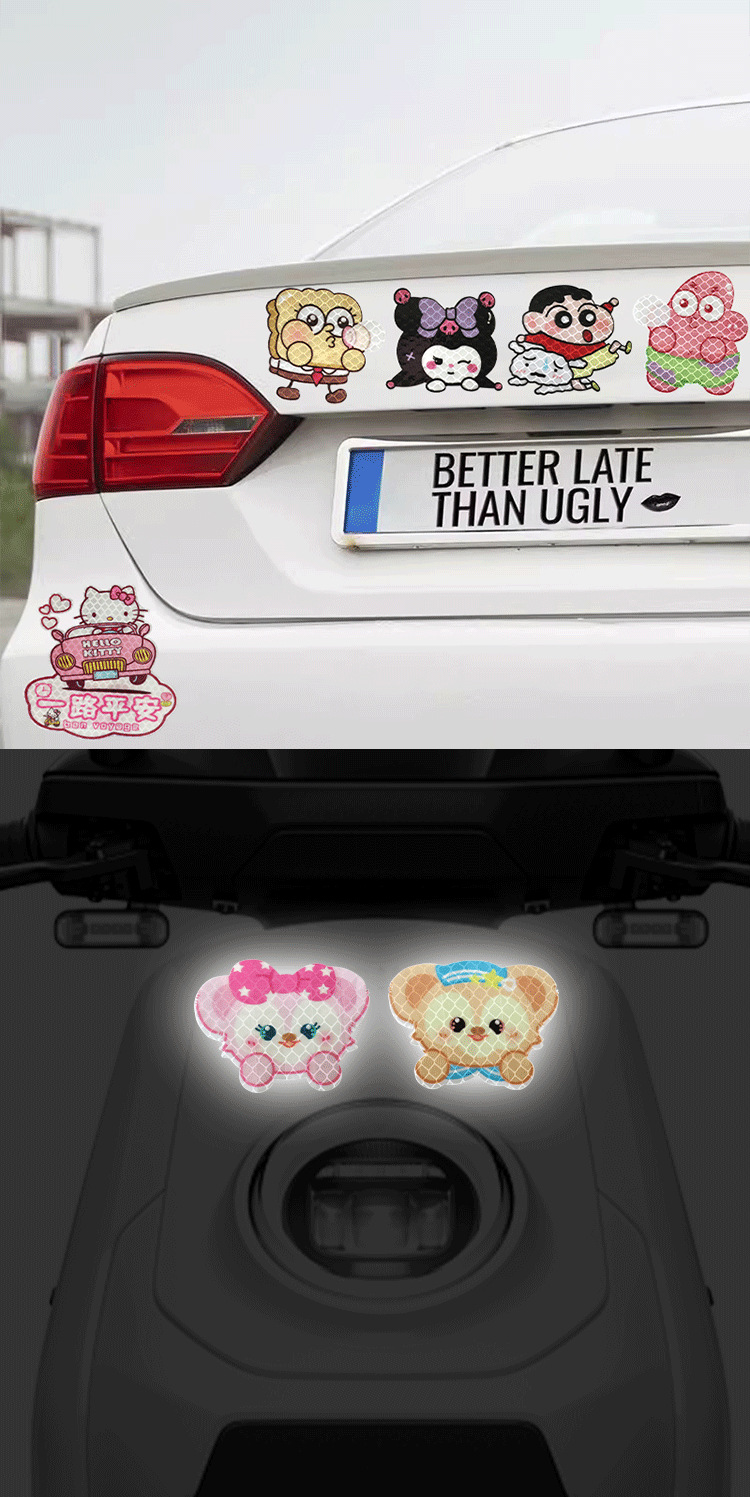자동차 반사 스티커 블록 스크래치 스티커 만화 오토바이 밤 경고 스티커 성격 창조적 인 만화 캐릭터스토어 가기