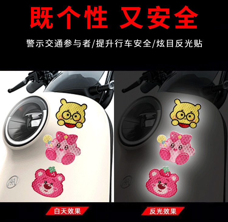 자동차 반사 스티커 블록 스크래치 스티커 만화 오토바이 밤 경고 스티커 성격 창조적 인 만화 캐릭터