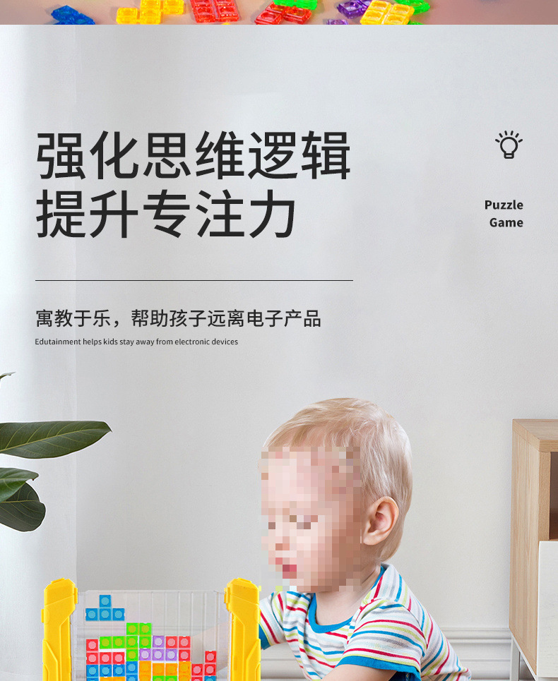 어린이 퍼즐 3D 테트리스 빌딩 블록 장난감 소년과 소녀 초점 훈련 장난감스토어 가기