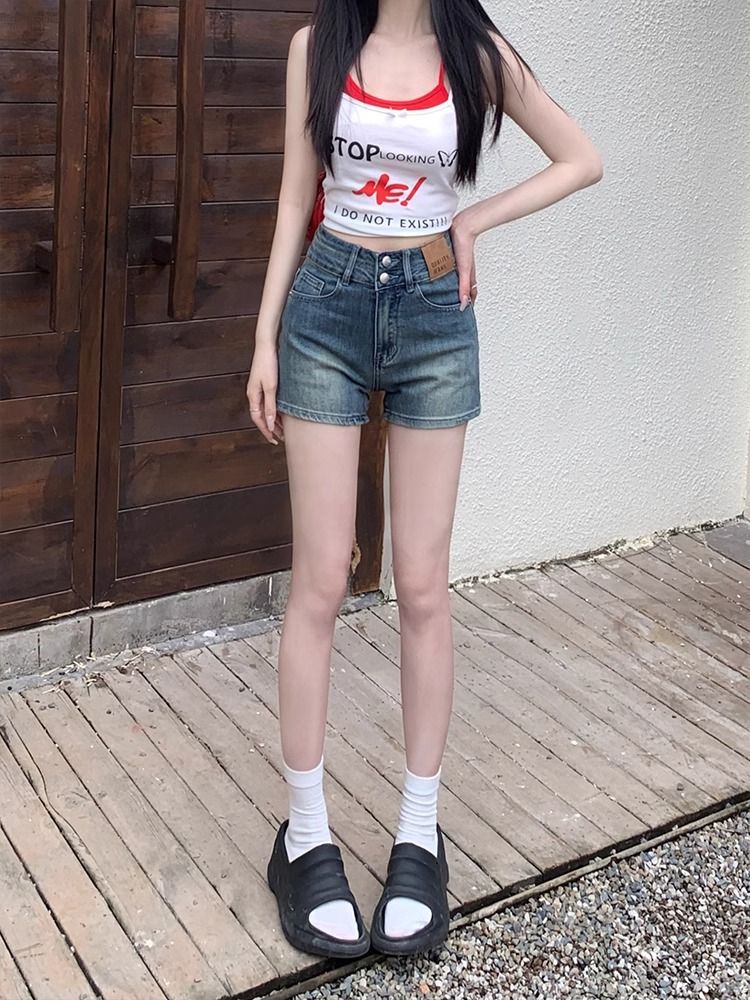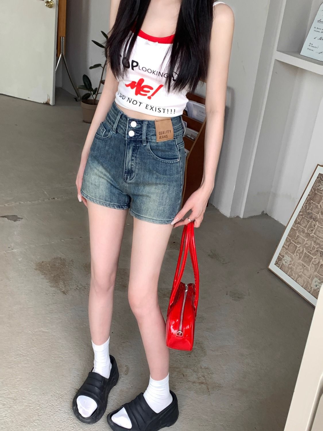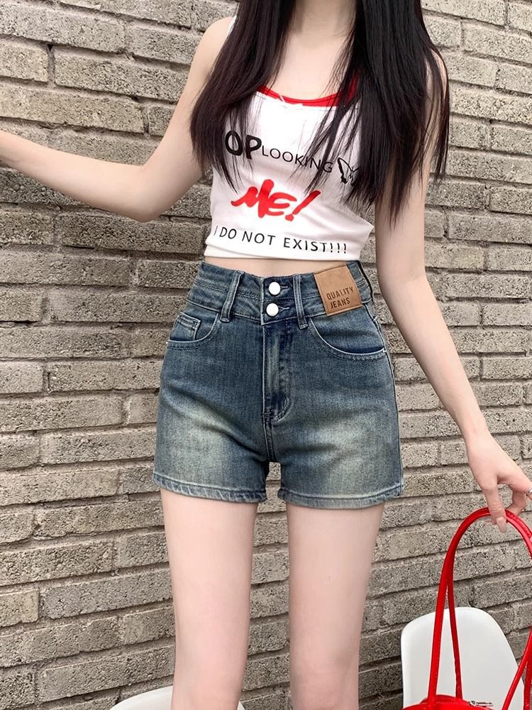 높은 허리 데님 반바지 여성 2025 새로운 빈티지 스파이스 소녀 스트레치 힙합 슬림 A 라인 핫 울트라 짧은 바지 트렌디스토어 가기