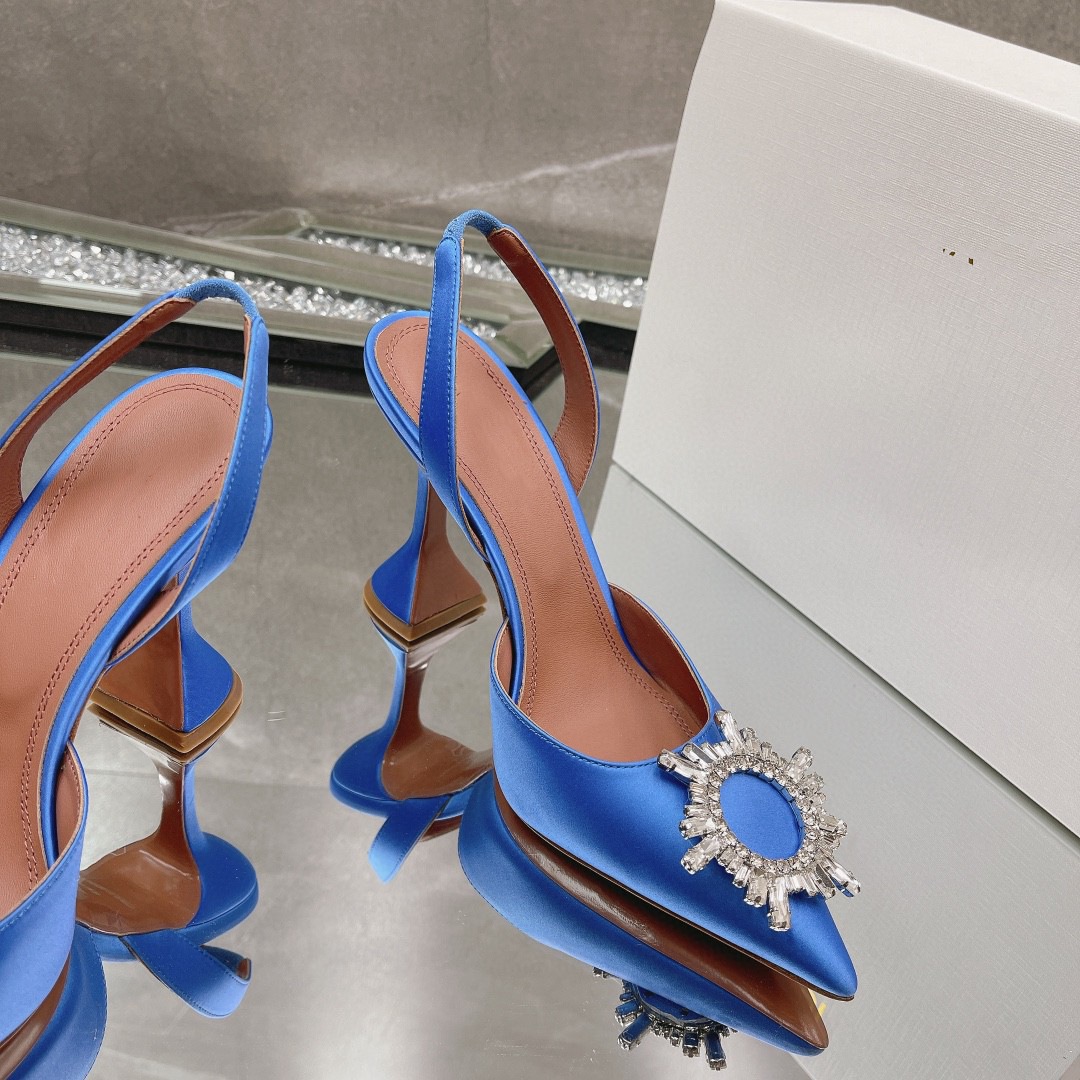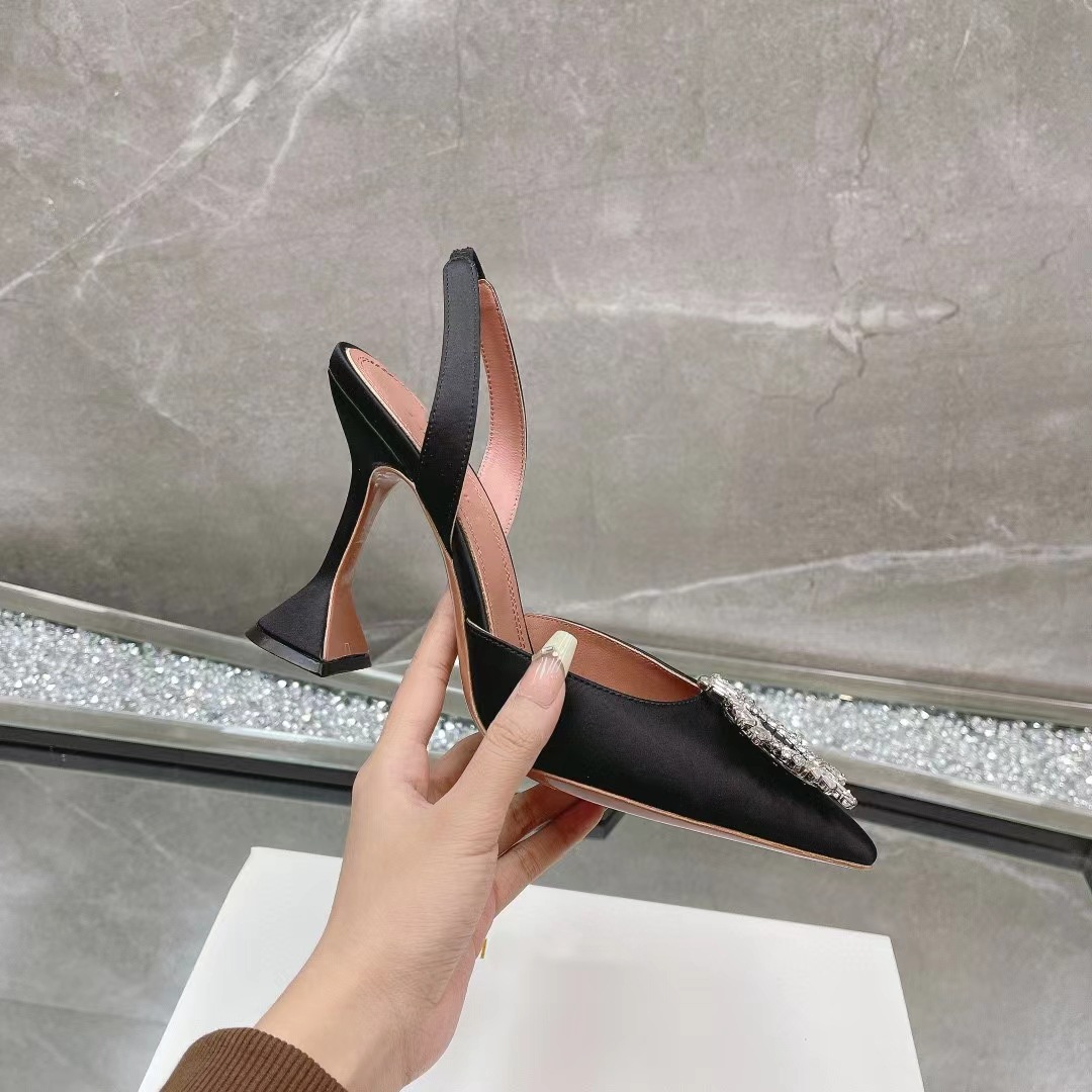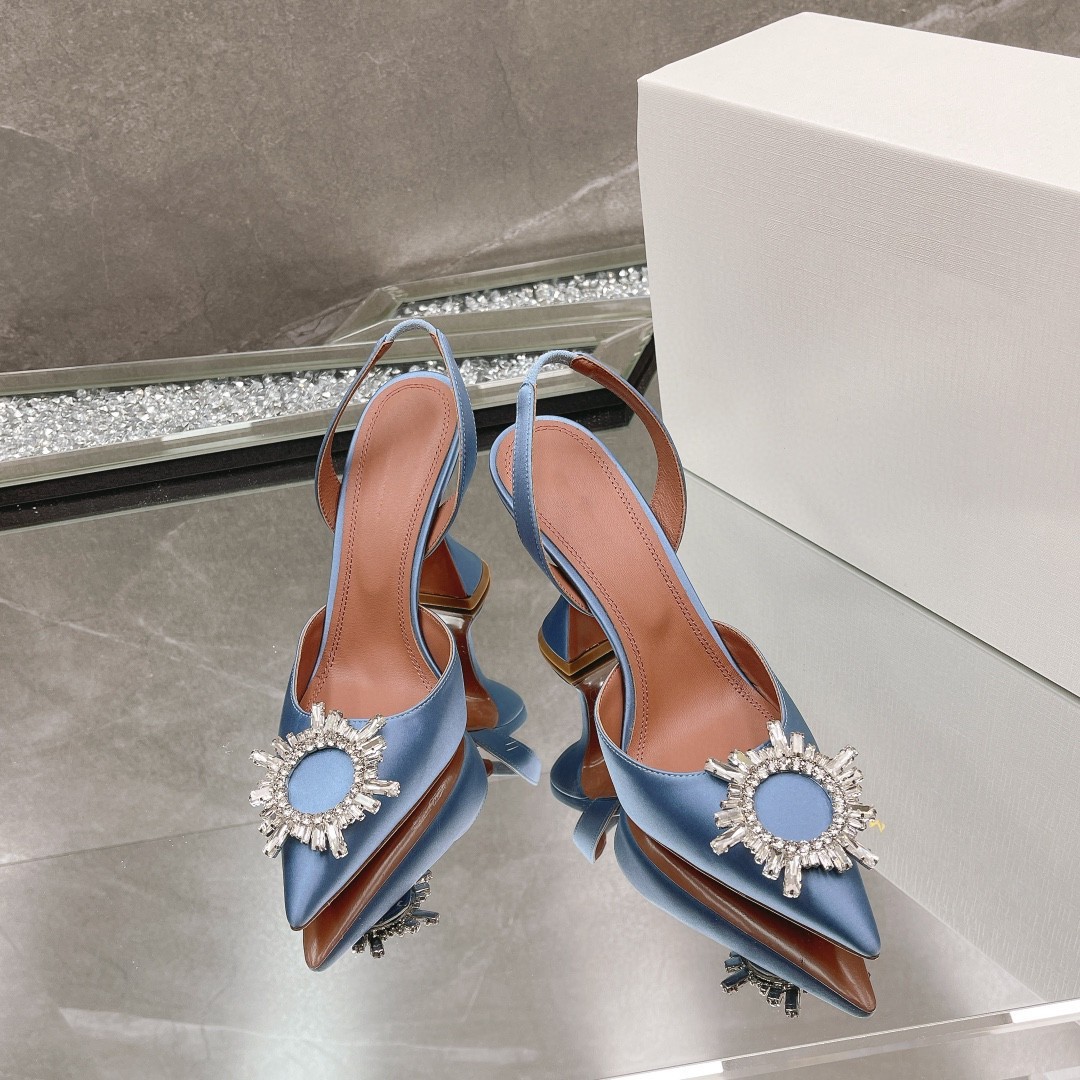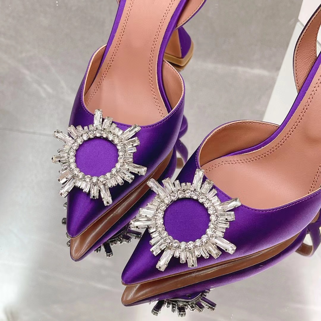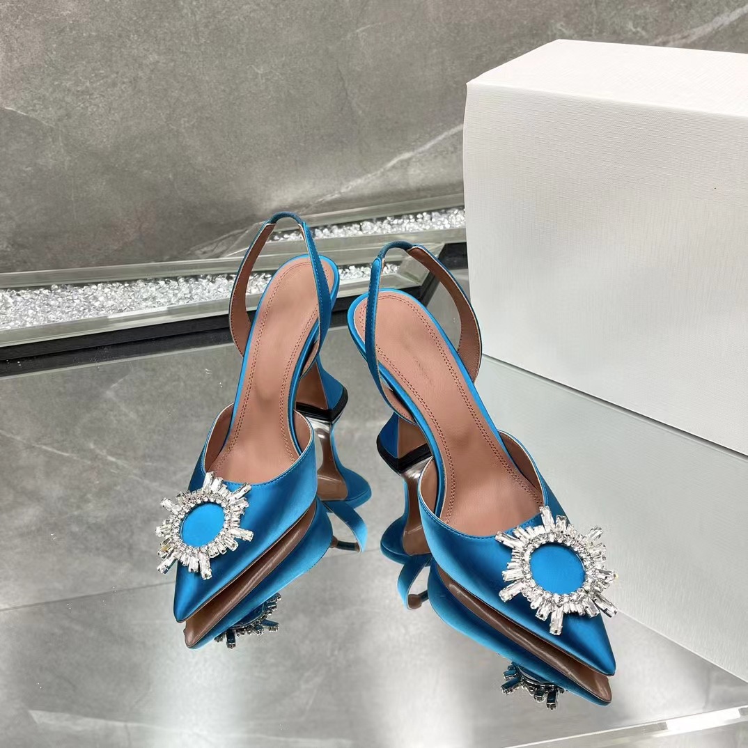 봄과 여름 2024 새로운 라인스톤 해바라기 버클 하이힐 슈즈 여성용 말굽 힐 실크 새틴 트렌디 샌들스토어 가기