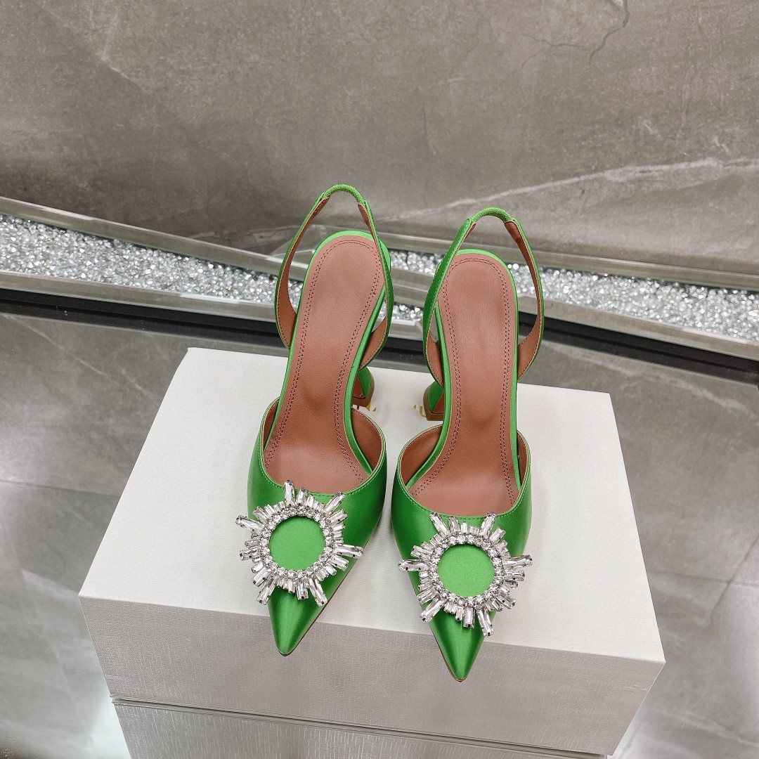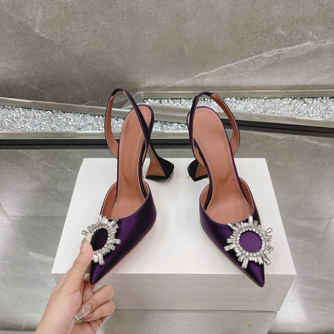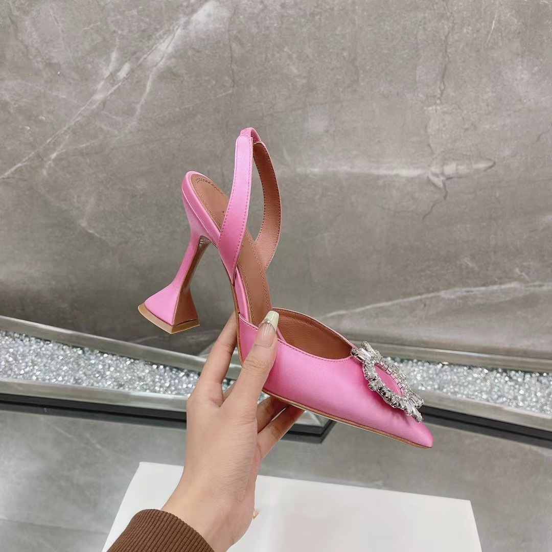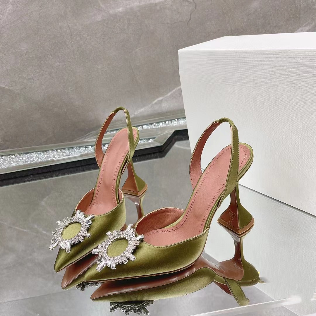 봄과 여름 2024 새로운 라인스톤 해바라기 버클 하이힐 슈즈 여성용 말굽 힐 실크 새틴 트렌디 샌들