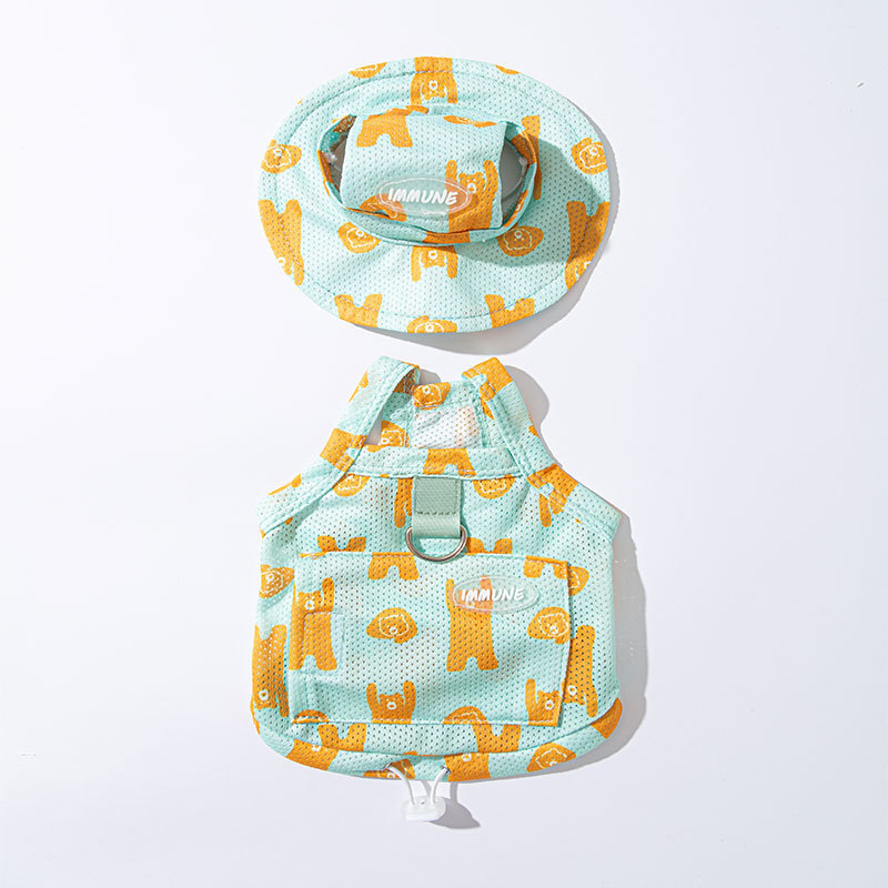 봄과 여름 강아지 의류 통기성 스트레치 곰 견인 멋진 옷 후드 세트 Bichon 냉각 애완 동물 옷