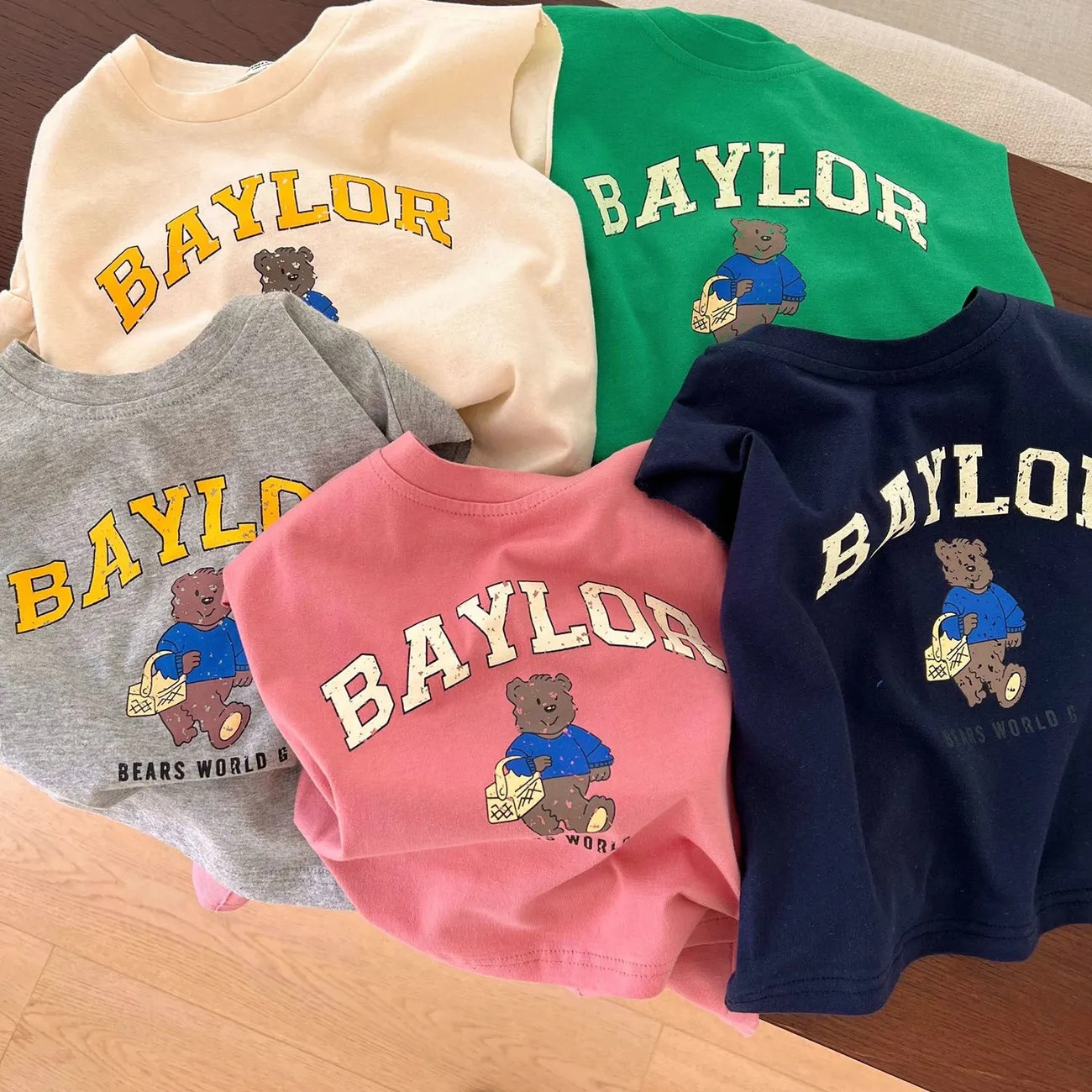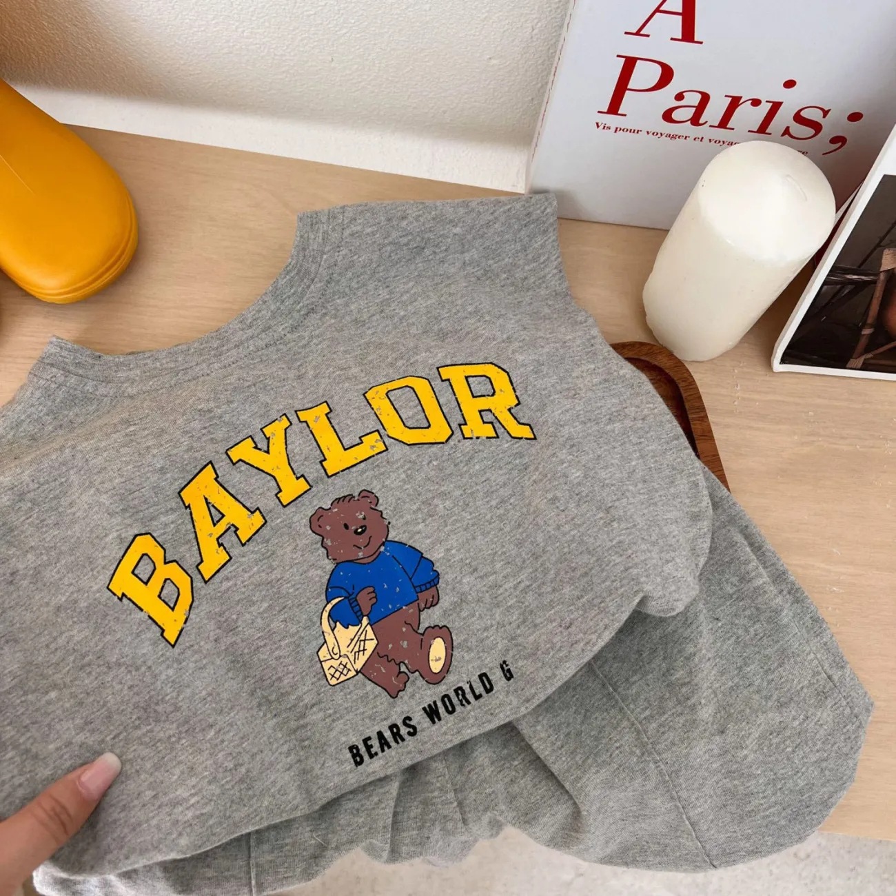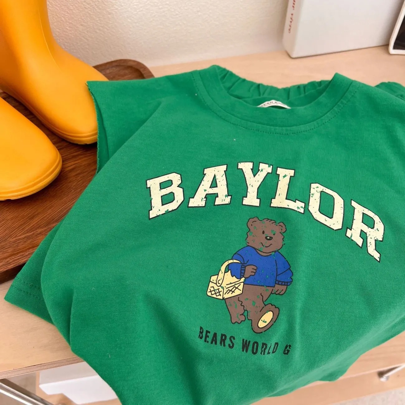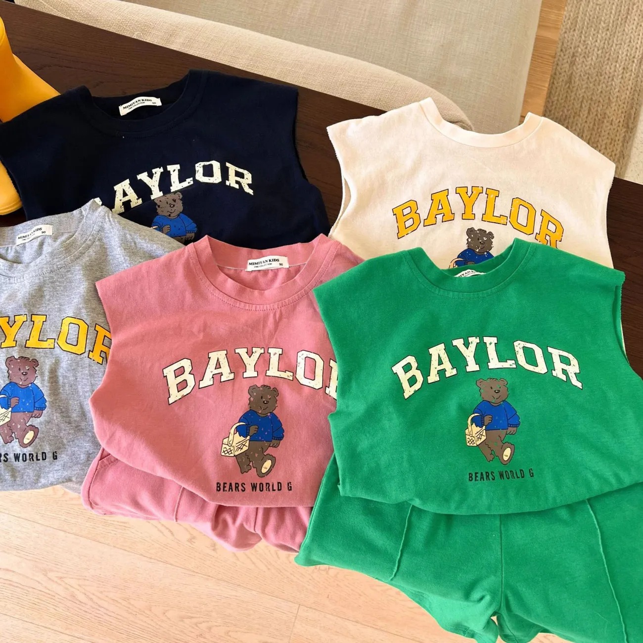 어린이 면 민소매 세트 2025 여름 소년과 소녀 만화 곰 조끼 아기 캐주얼 투피스 유행 세트