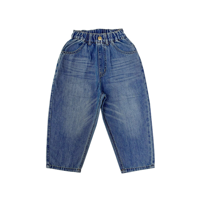 마오양 아동복 2025 봄 새로운 일본 심플 청바지 복고풍 씻은 면화 데님 바지스토어 가기